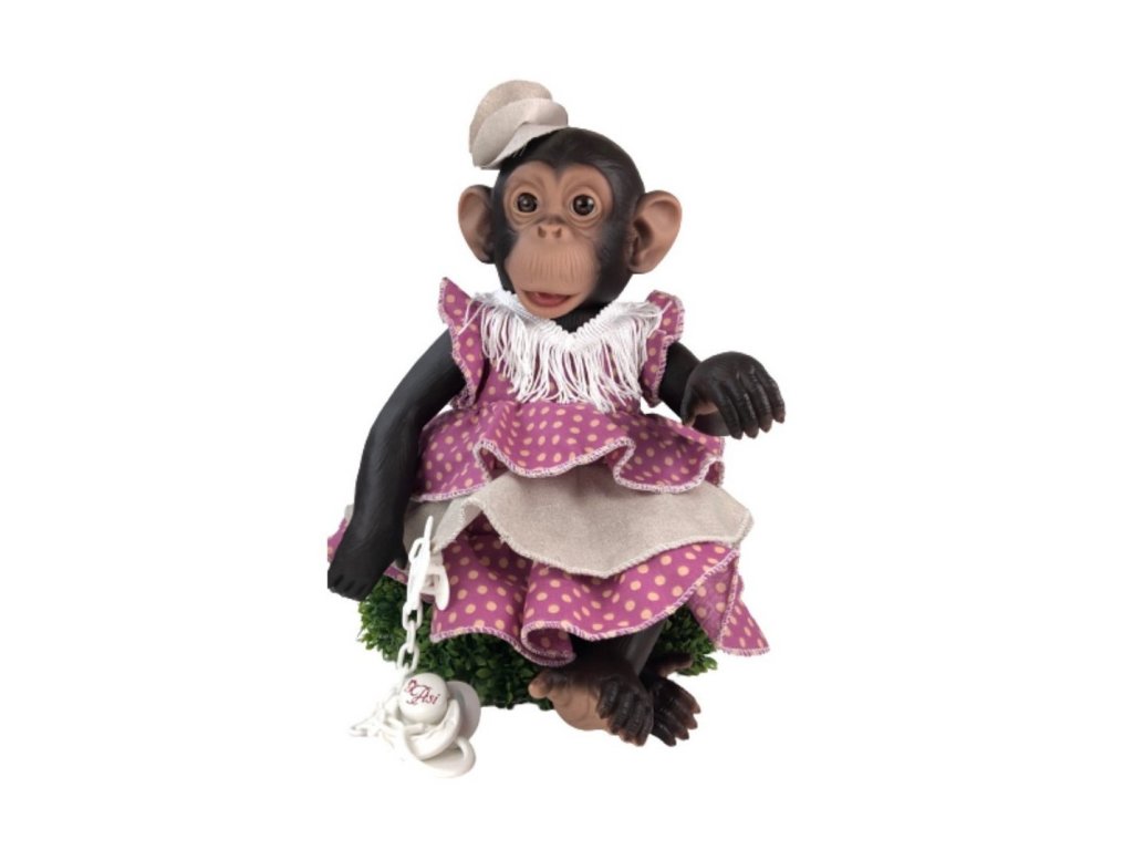 Rozkošná vinylová opička s vôňou vanilky, vysoká 32 cm, je exkluzívnym dizajnom z kolekcie Animal Reborn, určenej pre zberateľov a deti vo veku 3+ . Lola 0607270 oblečená v originálnom ručne šitom oblečení určite dodá luxus každej zbierke hračiek.