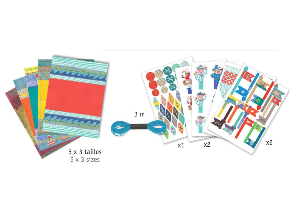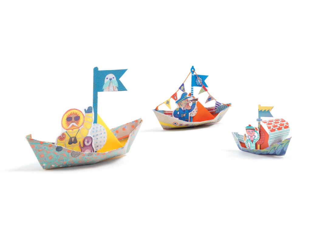 More volá, hoci len vo vani! Sada na výrobu origami lodiek obsahuje nádherne farebné impregnované papiere – v troch rôznych veľkostiach pre 5 rôznych modelov lodiek. Originálne papierové skladačky rozvíjajú jemnú motoriku, trpezlivosť a zmysel pre detail. Vďaka impregnovanému papieru sa loďky udržia na vode. Ďalší obsah tvoria samolepky a niť (3 m) potrebné na dotvorenie celkového dizajnu.Dodatočné parametre