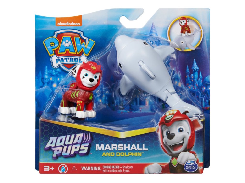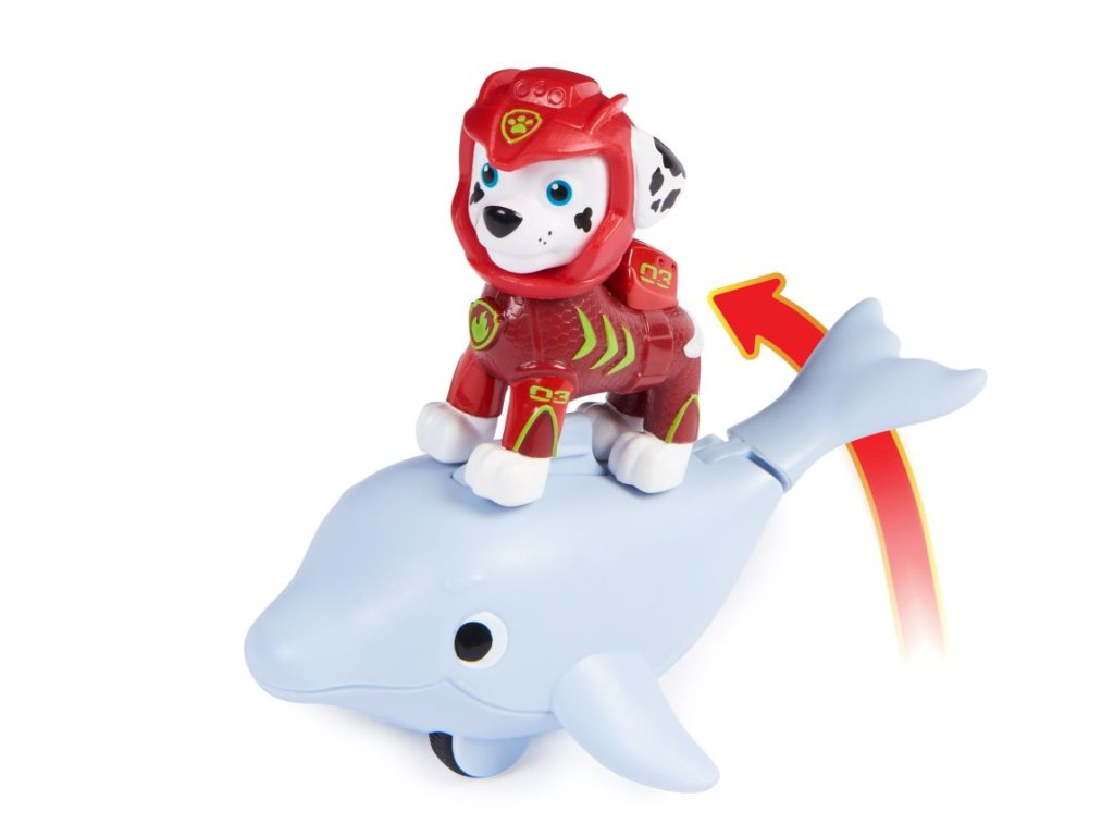 Marshall v úplne novom neopréne a jeho verný delfíni kamoš. Pripevni Marshalla na plutvu na chrbte delfína, posúvaj delfína dopredu, aby si aktivoval pohyby jeho chvosta a vyraz do záchranárskej akcie. Vhodné od 3 rokov.Dodatočné parametre