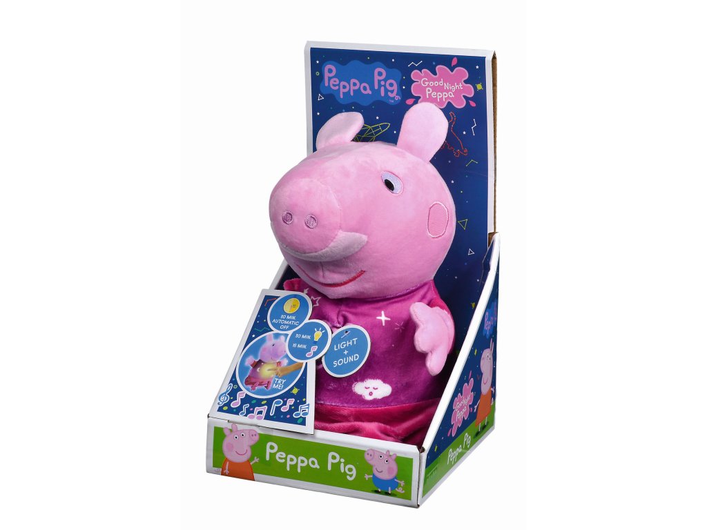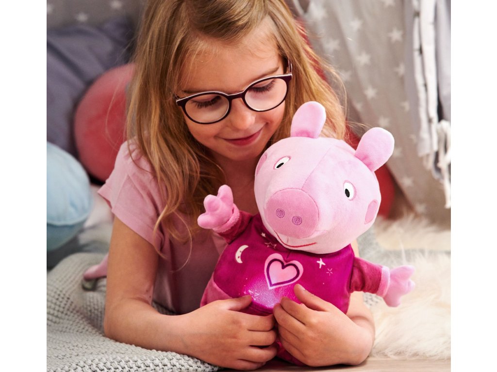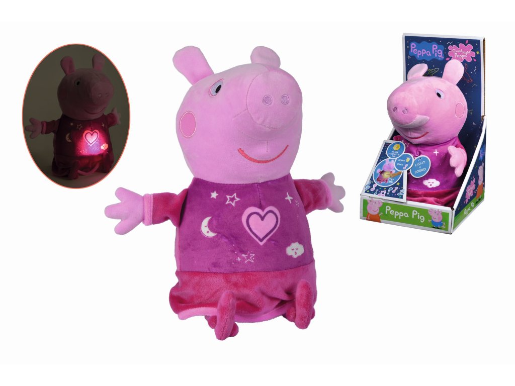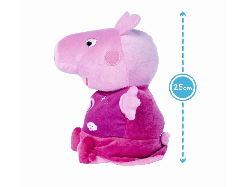 Obľúbené prasiatko hrá uspávanku a svieti príjemným nočným svetielkom. Automatické vypínanie. Výška 25 cm.Dodatočné parametre