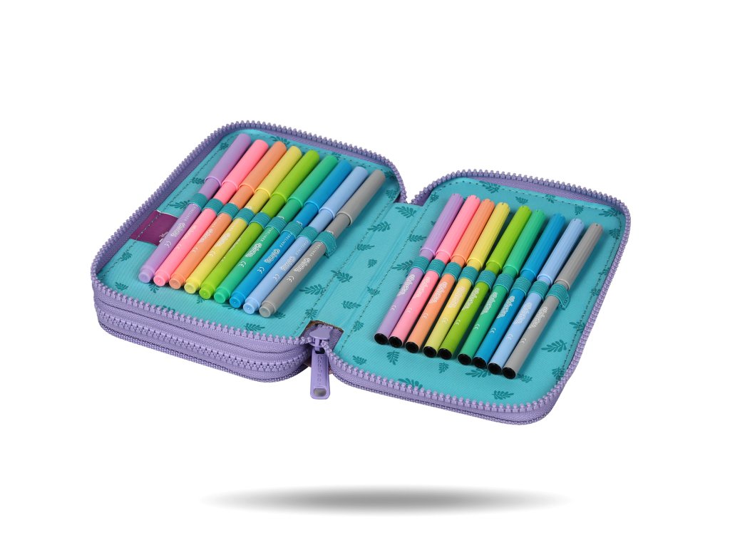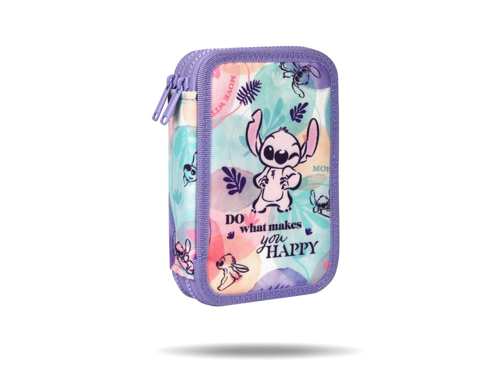 Peračník Jumper dvojposchodový Stitch Pastel Všetko potrebné na písanie a tvorenie v jednom praktickom peračníku Peračník Jumper Stitch Pastel je dvojposchodový organizér pre deti, ktorý obsahuje všetko potrebné na písanie a kreslenie. S jemným motívom Stitcha a odolným zipsom s kontrastným lemovaním je ideálny pre školákov. Gumičky na písacie potreby zaisťujú pevnosť a poriadok, zatiaľ čo vybavenie ako fixky, pastelky a ceruzky zabezpečia všetko, čo deti potrebujú pre tvorivé činnosti.Obsah:18× fixka12× pastelka1× trojhranná ceruzka HB 1× gélový roller 0,7 mm1× pravítko 15 cm1× guma1× strúhadloDodatočné parametre