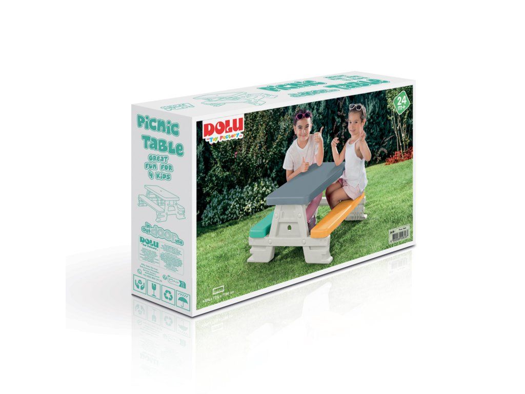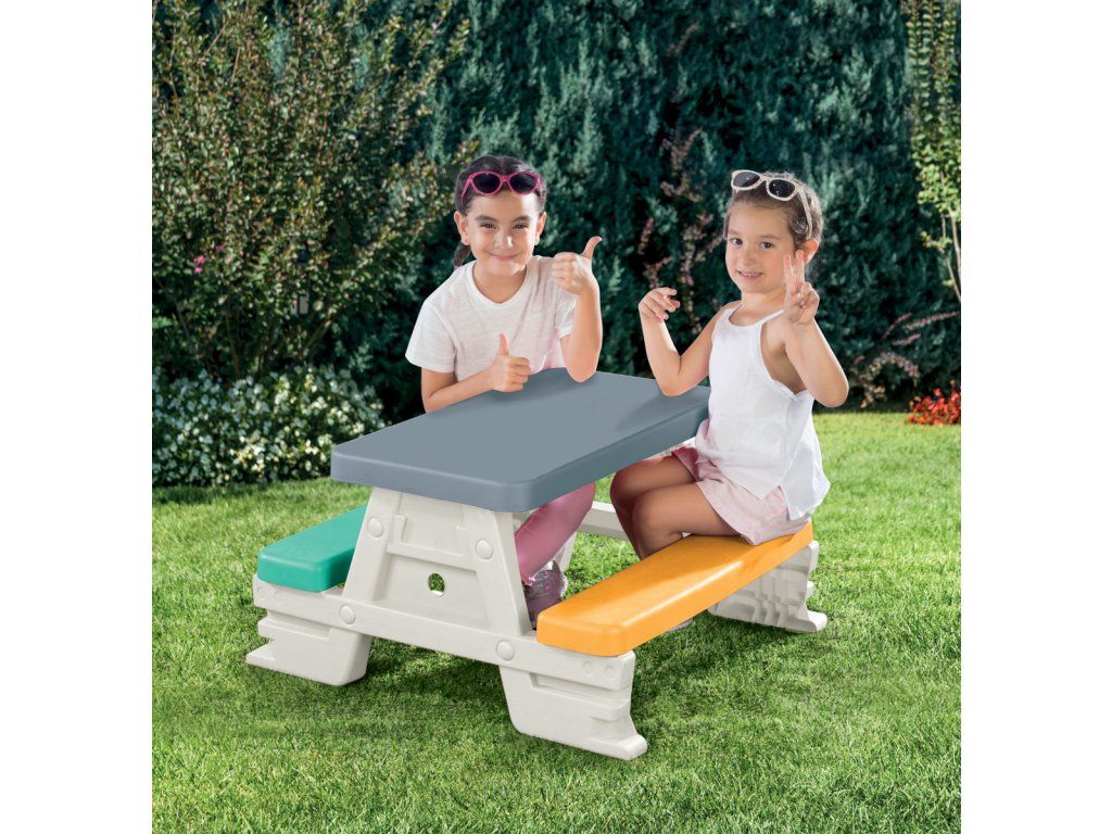 Piknikový stôl s lavicami poteší malých chlapcov aj dievčatá. Stôl je vhodný pre vonkajšie aj vnútorné použitie. Deti môžu stolíček používať pre svoje hry, pri kreslení a rôznych výtvarných činnostiach. Vyrobené z kvalitného a odolného materiálu. Nosnosť 50 kg. Váha: 5,2 kg. Rozmer výrobku: 43 x 77 x 71 cm. Balenie: 50,5x17,5cm. Vek 24m+Dodatočné parametre