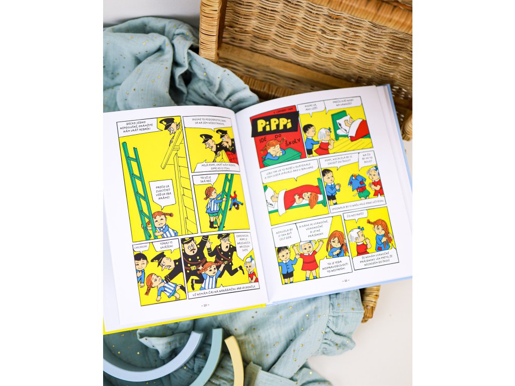 Pippi sa prisťahovala a iné príbehy Pippi a jej svet plný fantázie, zvierat a kamarátstva Vitajte vo svete, kde je všetko možné – a kde býva Pippi! Táto neobyčajná komiksová kniha prináša príbehy o najslávnejšej ryšavej hrdinke detskej literatúry, ktorá žije sama vo vile Vilôčke s koníkom a opicou. Ale určite nie je sama – má verných kamarátov Tommyho a Anniku, s ktorými zažíva tie najneuveriteľnejšie dobrodružstvá. Pippi má síce zvláštne meno, správanie aj výzor, no jej odvaha, sloboda a humor si získajú každého malého čitateľa. Vďaka veľkým písmenám sú tieto komiksy ideálne aj pre deti, ktoré sa učia čítať. S Pippi bude čítanie vždy hra a radosť!Dodatočné parametre