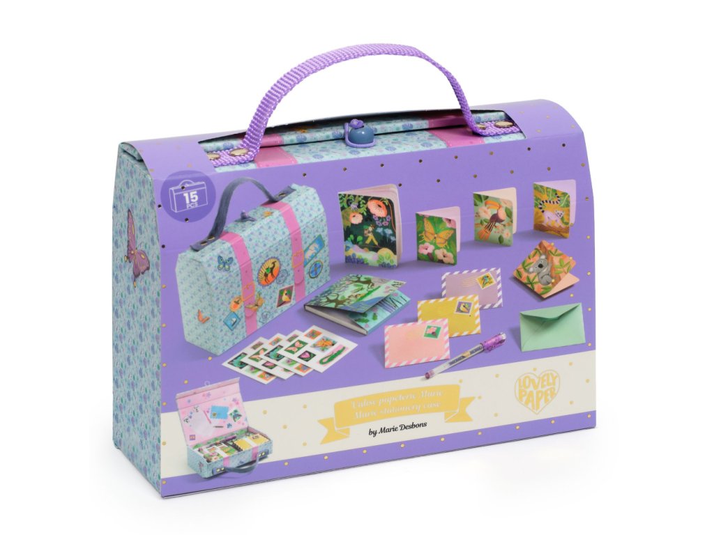 Písacia sada v kufríku modrýElegantné a praktické kufríkové puzdro Objavte kufríkové puzdro Marie od DJECO z kolekcie LOVELY PAPER. Tento dizajnový a ľahko prenosný „kufrík“ je vyrobený z pevného kartónu a disponuje jedinečným zapínaním s drevenou guľôčkou a gumičkou. Je to skutočná truhlica s pokladom pre milovníkov kvalitného papierenského tovaru – ideálne na písanie, kreslenie alebo posielanie správ. Komplexná sada papierenských potrieb 1 kufrík 1 zápisník 1 poznámkový blok 1 ružové gélové pero 4 obálky 4 pozvánky 4 listy nálepiek Sada podporuje kreativitu a umožňuje zaznamenávať všetky inšpirácie štýlovo a prakticky. Hodí sa ako doplnok ku knižkovému puzdru Marie. Ekologické a bezpečné materiály Vyrobené z papiera a kartónu s certifikátom FSC®, s dôrazom na kvalitu, bezpečnosť a ekologickú zodpovednosť. Technické informácie Rozmery produktu (aj balenia): 18 x 13,5 x 6 cm Vhodné pre deti aj dospelých, ktorí milujú štýlové a praktické papierenské doplnkyDodatočné parametre