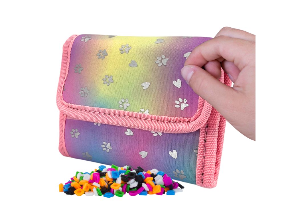 PIXIE CREW peněženka z kolekce Enchanted hearts & paws je perfektním řešením pro každého, kdo hledá stylový, praktický a zábavný doplněk. S designovou koncepcí stylu spirálek, je tato peněženka skvělou volbou pro všechny děti a teenagery, které se chtějí vyjádřit svým vlastním způsobem a projevit svůj jedinečný styl. Peněženka je vybavena růžovým PIXIE CREW panelem s 86 body, které umožňují osobní personalizaci. Díky PIXIE CREW pixelům si děti mohou vytvořit jedinečný design, který odpovídá jejich představám a vkusu. Peněženka se zapíná na dva suché zipy, což zajišťuje bezpečné uzavření a ochranu všech cenností uvnitř. Vnitřek peněženky je prakticky uspořádaný. Nabízí kapsu na mince se zipem, která zabraňuje jejich ztrátě. Dále obsahuje dostatek prostoru pro uskladnění platebních karet, průkazek a také prostor na bankovky. Vše je přehledně uspořádáno a snadno přístupné. Peněženka je navíc zabalená v dárkové PET designové krabičce, čímž se stává skvělým dárkem pro všechny malé i velké milovníky designu a kreativity. S PIXIE CREW peněženkou z kolekce enchanted hearts & Paws si děti mohou nejen užít zábavu s modifikováním vlastního designu ale také mít praktický a stylový doplněk, který jim pomůže udržet jejich peníze a cennosti v pořádku. Rozměry balení: 10 x 13 x 2 cm. Věk: 7+Dodatočné parametre