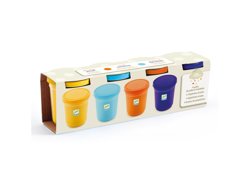 Plastelína pre najmenších: Prírodné farbyKreatívna plastelína v prírodných farbách pre prvé modelovaniePlastelína je ideálna prvá tvorivá aktivita pre malé deti, ktoré objavujú svet cez zmysly, predovšetkým hmat. Táto sada obsahuje 4 tégliky kvalitnej plastelíny v prírodných farbách – žltá, bledomodrá, oranžová, fialová – a je navrhnutá špeciálne pre malé rúčky batoliat. Mäkká a vláčna plastelína nelepí, ľahko sa tvaruje a nezanecháva farebné škvrny, takže je ideálna pre deti, ktoré s modelovaním ešte len začínajú. Ak je plastelína z otvoreného téglika ponechaná na vzduchu, mierne vyschne a nemusí zostať úplne mäkká. Preto ju po tvorení vždy uložte späť do téglika a uzavrite, aby zostala vláčna čo najdlhšie.Čo všetko sada obsahuje:4 x tégliky plastelíny v prírodných farbáchKaždý téglik obsahuje približne 140 g hmotyPevné tégliky s viečkami na bezpečné skladovaniePrečo je táto plastelína skvelá pre deti:Vhodná pre deti od 18 mesiacovNelepí sa a ľahko sa tvaruje – ideálna pre prvé modelovanie detíNepôsobí mastne a nefarební ruky ani povrchyMäkká a jemná textúra je vhodná pre menšie detské rukyRozvíja jemnú motoriku, koordináciu oko–ruka, kreativitu a predstavivosťDodatočné parametre