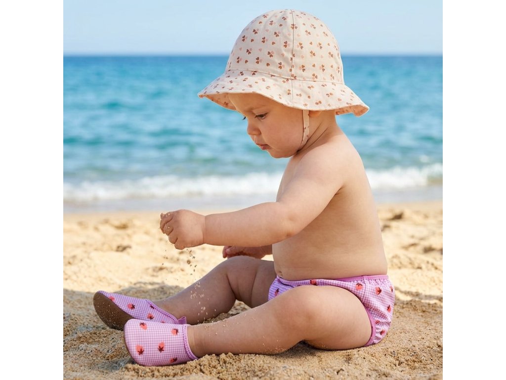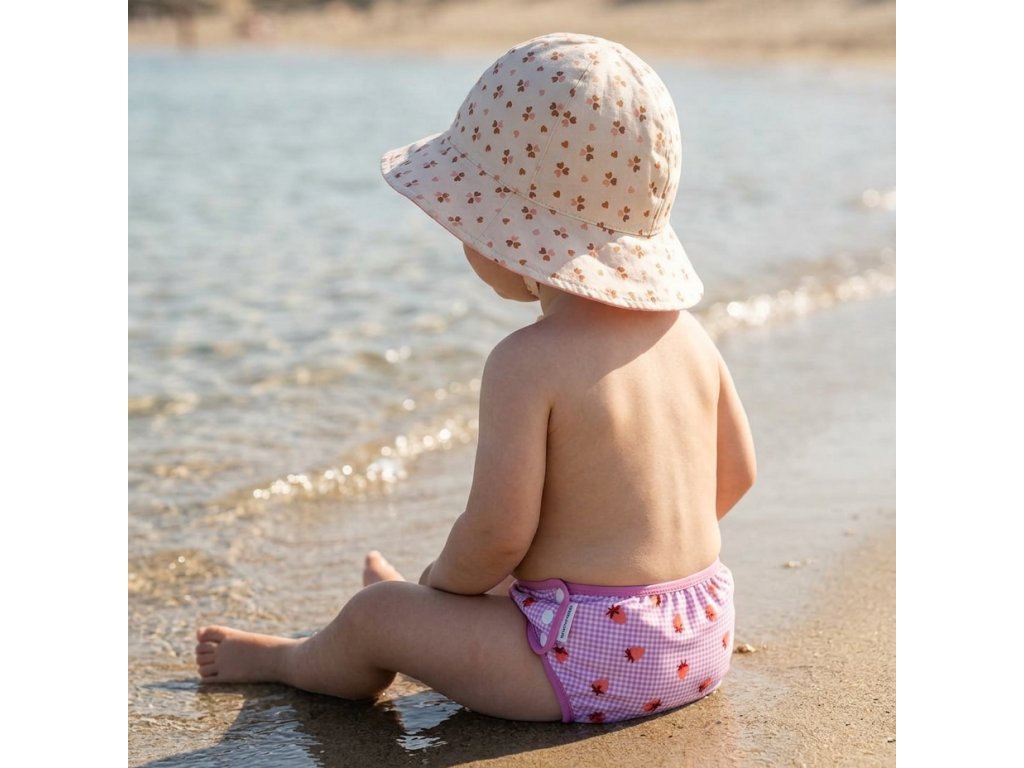 Plavky pre bábätká s UPF 50+ Strawberry Plavková plienka pre bábätká Strawberry s UPF 50+: prateľné plavky do vody na pláž aj k bazénuPlavková plienka Strawberry je praktické riešenie na letné kúpanie – pri bazéne, na pláži aj pri mori. Ochrana UPF 50+ pomáha chrániť citlivú detskú pokožku pred slnkom a strih je navrhnutý tak, aby sa bábätko cítilo pohodlne pri každom „vodnom“ programe – kúpanie, oddych na osuške aj hra na brehu.Plienka je ušitá z pružnej zmesi 82 % polyester a 18 % elastan a je vyrobená z recyklovaného polyesteru. Materiál sa príjemne prispôsobí telu a neobmedzuje v pohybe. Veľkou výhodou je, že ide o prateľnú plavkovú plienku – po použití ju jednoducho vyperiete a je pripravená na ďalší deň pri vode. Jemný motív Strawberry pôsobí letne a ľahko ho zladíte s UV tričkom, klobúčikom či ďalšími doplnkami k vode.Prečo sa oplatí na leto UPF 50+ – vysoká ochrana pred UV žiarením Plavková plienka pre bábätká – praktická vo vode aj na brehu Prateľná – opakovane použiteľná na ďalšie kúpanie Pružný materiál – pohodlie a voľnosť pohybu Recyklovaný polyester – materiál z recyklovaných vlákien Certifikácia – uvedené ASTM D6603Dodatočné parametre