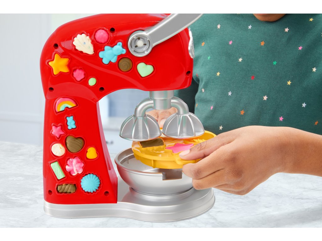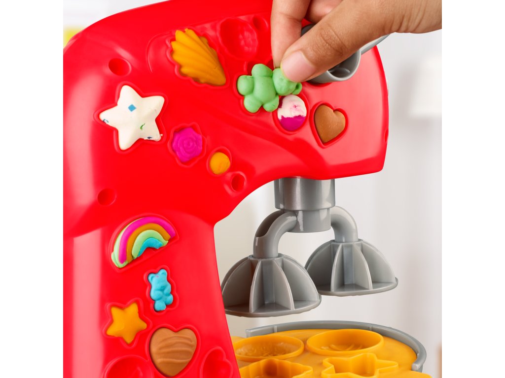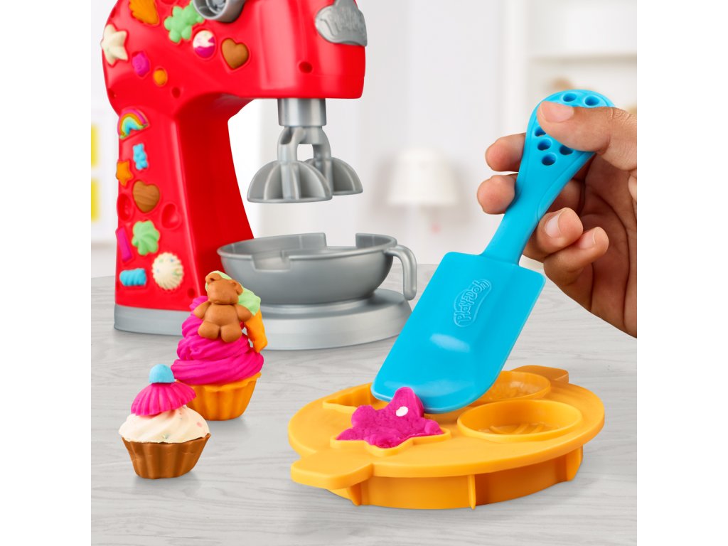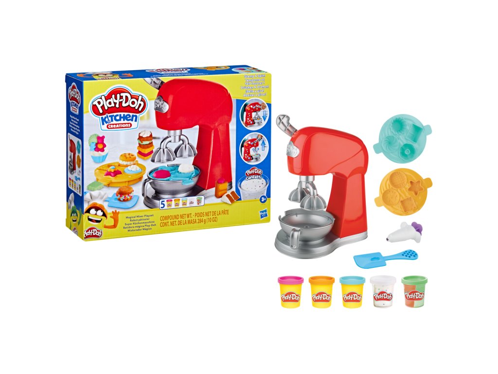 Táto sada ponúka všetko potrebné na vytváranie Play-Doh tort, koláčikov a sušienok, a to všetko bez neporiadku a horúcej rúry. V hračkárskej sade nájdete kúzelný mixér s vyberateľnou misou, v ktorej môžu malí cukrári využiť jednu z dvoch priložených foriem na pečivo. Stačí formu naplniť modelovacou hmotou, zatiahnuť za rukoväť a na svete sú úžasné sušienky a nápadité tvary tort. Deti môžu použiť vytláčací lis alebo špachtľu na dekoráciu svojich sladkostí. Táto hračkárska sada obsahuje 300 gramov netoxickej modelovacej hmoty v rôznych farbách a predstavuje zábavnú umeleckú a tvorivú aktivitu alebo darček pre deti, ktoré milujú kuchynské hračky a jedlo na hranie. Vek: 3+Dodatočné parametre