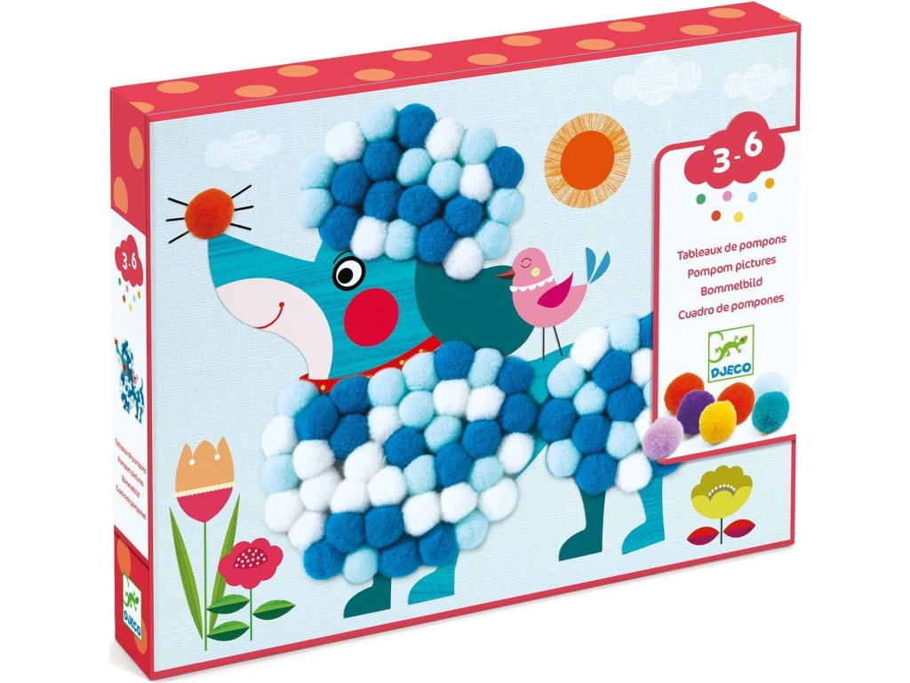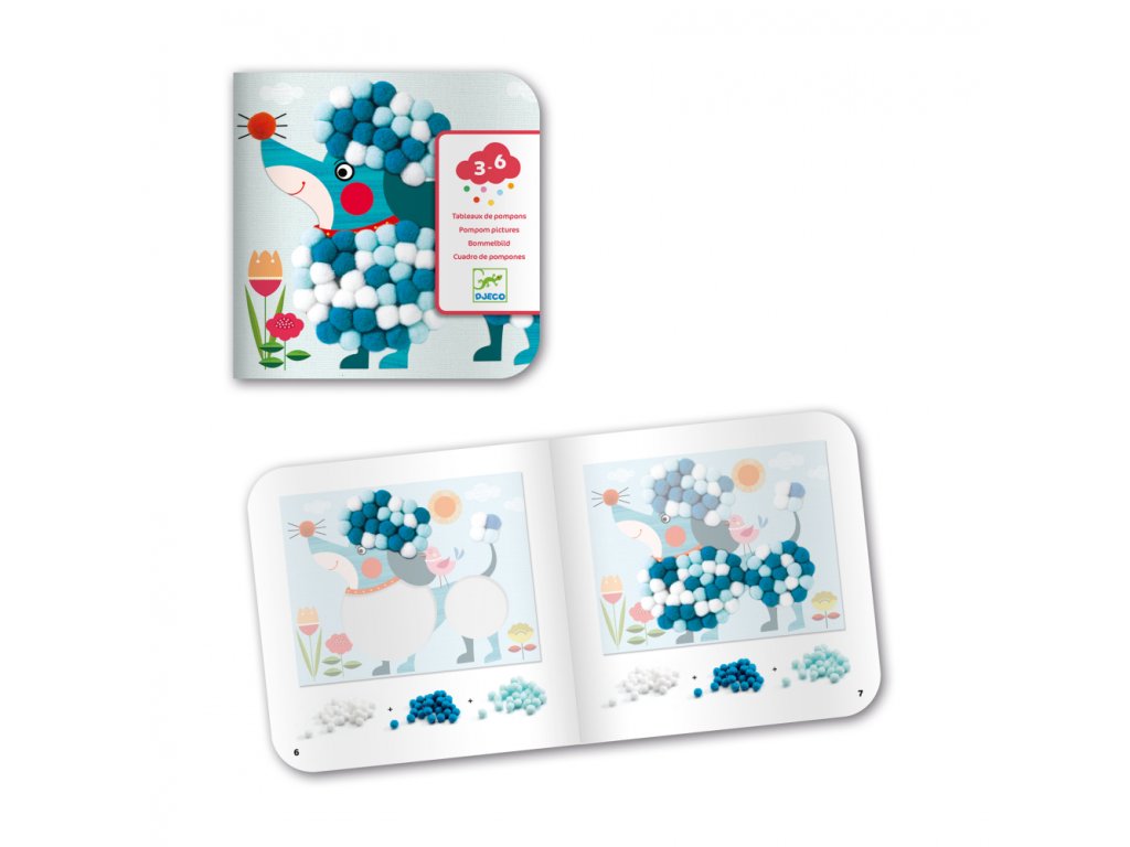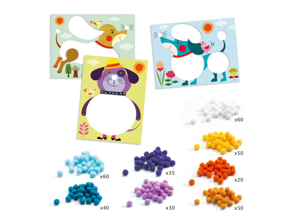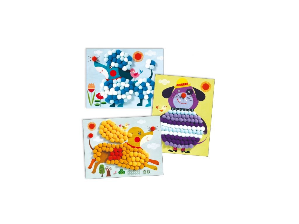 Pom Pom Koláže psíci Doplň psíkov malými pom pom brmbolcami. Vyber sa na prechádzku s 3 rozkošnými mäkučkými psíkmi! Zábavná aktivita na princípe koláže.Tvorivá sada pre malých umelcov podporuje kreativitu a jemnú motoriku. Čisté lepenie bez lepidla: prázdne miesta na obrázkoch majú lepivý povrch a brmbolce stačí na ne pritlačiť. Obrázkový návod podporí samostatnú prácu. Obsah: 3 hrubé kartónové obrázky psíkov, 345 farebných brmbolcov, obrázkový návod. Rozmery obrázkov: 28 x 21 cm.Dodatočné parametre