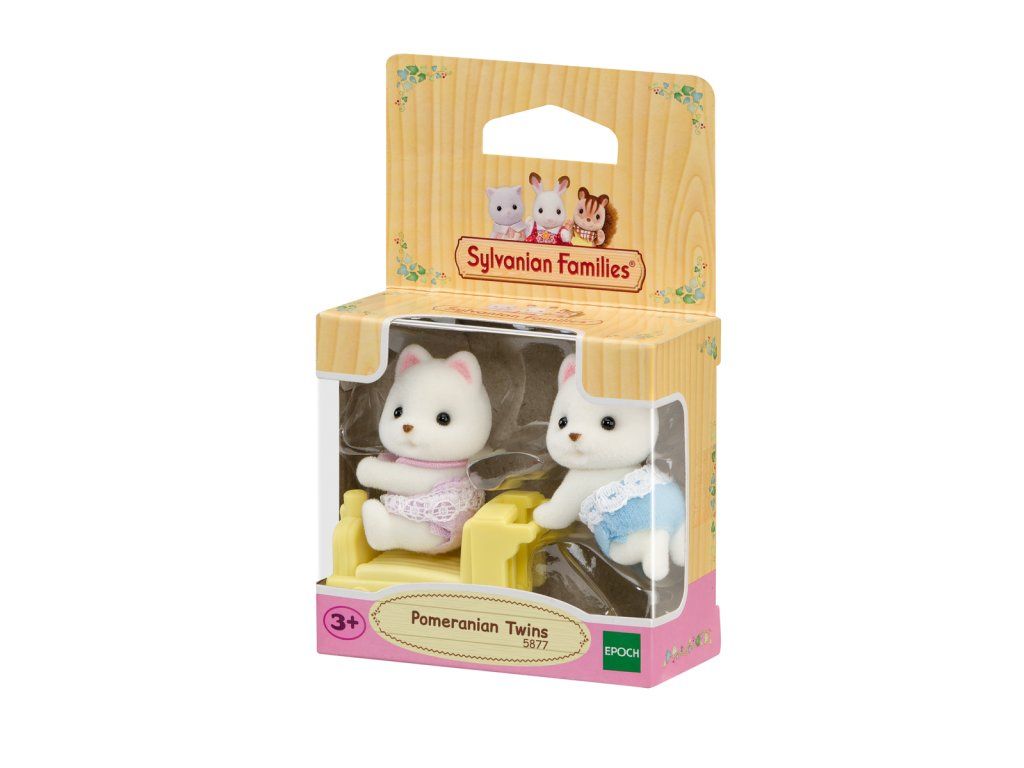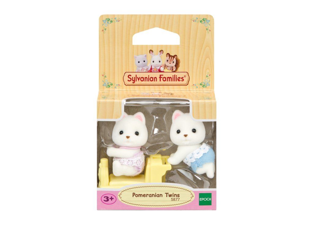 Dvojčata z rodiny pejsků Pomeranian mají charakteristické roztomilé obličeje. Sada obsahuje dvě malé figurky dvojčat pokryté měkkým semišovým kožíškem a také vozítko ve tvaru mašinky. Dvojčata jsou oblečena do zábavných, barevných oblečků s krajkou. Vozítko lze kombinovat s vozítky z jiných sad s dvojčaty. Hračky Sylvanian Families rozvíjejí představivost a podporují děti k hraní rolí. Hraní s figurkami Sylvanian Families rozvíjí kreativitu a učí emoce prostřednictvím vytváření a vyprávění příběhů na základě každodenních zkušeností a pozorování světa. Vyznačují se nejvyšší kvalitou a výjimečným důrazem na detaily. Figurky Sylvanian Families mají pohyblivou hlavu. Oblečení je vyrobeno tak, aby se dalo opakovaně svlékat a oblékat. Baleno v krabičce. Rozměry balení: 7 x 7,5 x 3,5 cm. Věk: 3+Dodatočné parametre