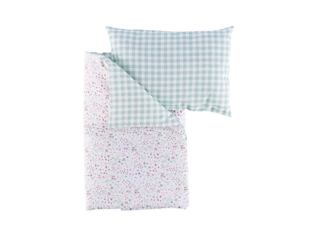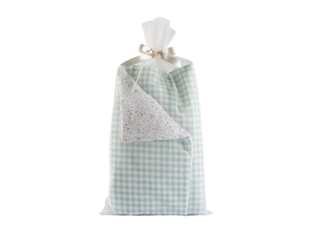 Súprava je z jednej strany zdobená jemnými kvetmi na svetlom pozadí a z druhej strany hladkou látkou v módnom mätovom károvanom vzore. Posteľná bielizeň z kolekcie Asi Cloe je zabalená v tylovom vrecúšku, ozdobenom béžovou lesklou saténovou mašľou. Skvelý darček pre milovníčky bábik od 3 rokov.