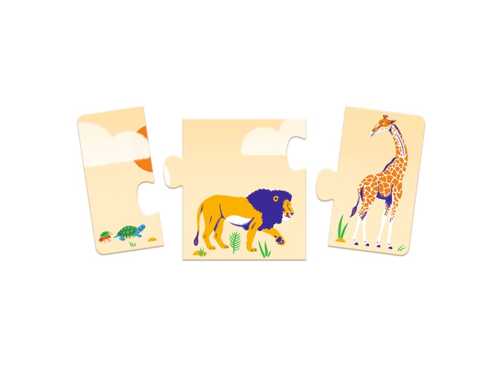 Postupové puzzle – Africké zvieratá (malý, väčší, najväčší)Skladanie podľa veľkosti pre najmenšíchPostupové puzzle malý – väčší – najväčší s motívom afrických zvierat sú ideálne prvé puzzle pre malé deti. Dieťa skladá zvieratká od najmenšieho po najväčšie, čím sa prirodzene učí porovnávať veľkosti a vnímať postupnosť. Puzzle pozostávajú z 10 pevných dielikov, ktoré sú prispôsobené malým detským rukám. Jednoduchý princíp skladania podporuje samostatnú hru a prináša deťom radosť z úspechu.Čo si dieťa pri hre precvičírozlišovanie veľkostí (malý – väčší – najväčší)logické myslenie a poradiejemnú motorikukoordináciu ruka–okosústredeniePrečo si vybrať puzzle od Djecoideálne ako prvé postupové puzzlekrásny motív afrických zvieratpevné dieliky vhodné pre malé rukyjednoduché a zrozumiteľné skladanievhodné pre deti od 3 rokovDodatočné parametre