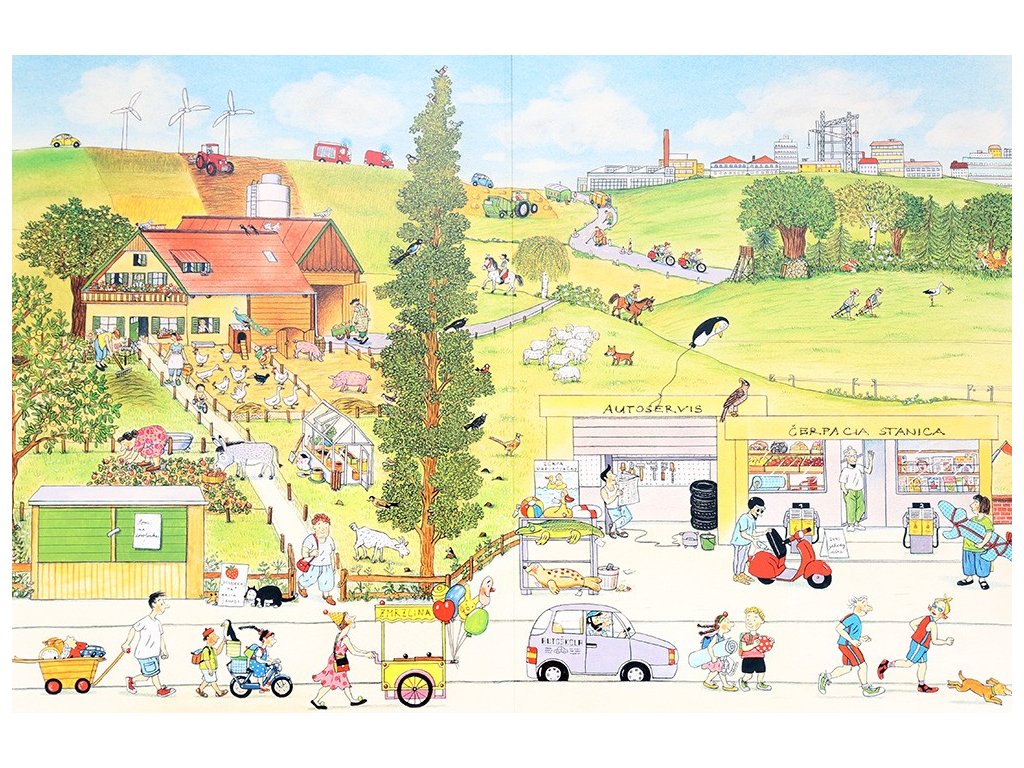 Potulky letom Kto spoznal aspoň jednu z piatich kníh zo série "Potuliek", bude ich chcieť mať doma všetky! Nemecká ilustrátorka a autorka detských kníh Rotraut Susanne Bernerová spracovala do knižnej podoby na prvý pohľad jednoduchý, no geniálny nápad. Jej Potulky (jarou, letom, jeseňou, zimou a nocou) rozprávajú nekonečné variácie príbehov bez slov. Autorka pri ich vytvorení využila len obrázky, prostredníctvom ktorých dieťa spoznáva obyvateľov mestečka a ich životné epizódy. V knihe Potulky letom sa stretávame so známymi i novými postavičkami uprostred horúceho leta. Dozrieva ovocie a napriek prázdninám je v meste neobyčajne rušno. Tu sa začína ozajstné dobrodružstvo pre malého čitateľa. Obrázky ho vtiahnu do mestečka, ktoré je spolu s ulicami, domami, škôlkou či tržnicou jediným statickým prvkom knihy. Veci, zvieratá i ľudia sa menia a putujú zo strany na stranu, aby žili svoj príbeh. A práve ten sa dá čítať viacerými spôsobmi. Je len na dieťati a rodičovi, ktorý spôsob si vyberie. Budete sledovať jednu postavu alebo sa zameriate na detaily? Zodpoviete otázku, čo sa skrýva v netradične zabalenom balíku? Kúpi si Anna nové šaty? A komu nesie Adam kyticu ruží?》Pozrite si recenziu na našom Instagrame - Potulky letom《 Zadná strana ponúka akúsi nápovedu o postavách, ktoré v Potulkách vystupujú. Deti si pomocou veľkoformátového leporela (výška 40 cm) zachytávajúceho postavičky pri rôznych činnostiach rozvíjajú slovnú zásobu (najmä slovesá), a trénujú pamäť a koncentráciu na detail spájaním súvislostí pri pozorovaní viacerých postáv a ich vývoja v knihe... Kniha perfektne rozvíja fantáziiu - dieťa sa stáva tvorcom nových a nových príbehov, pretože pri Potulkách letom príbeh nepočúva, ale sám si ho spolu s maminou či oteckom vytvára. Potulky letom prinesú vzrušujúcu zábavu nielen pre deti, ale určite i pre dospelých.Dodatočné parametre