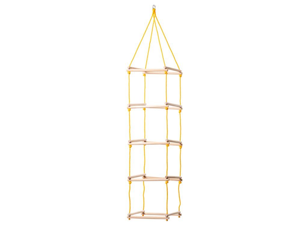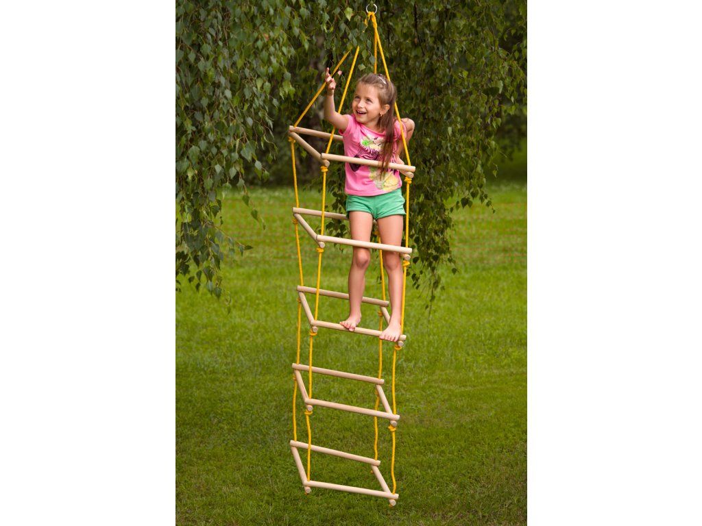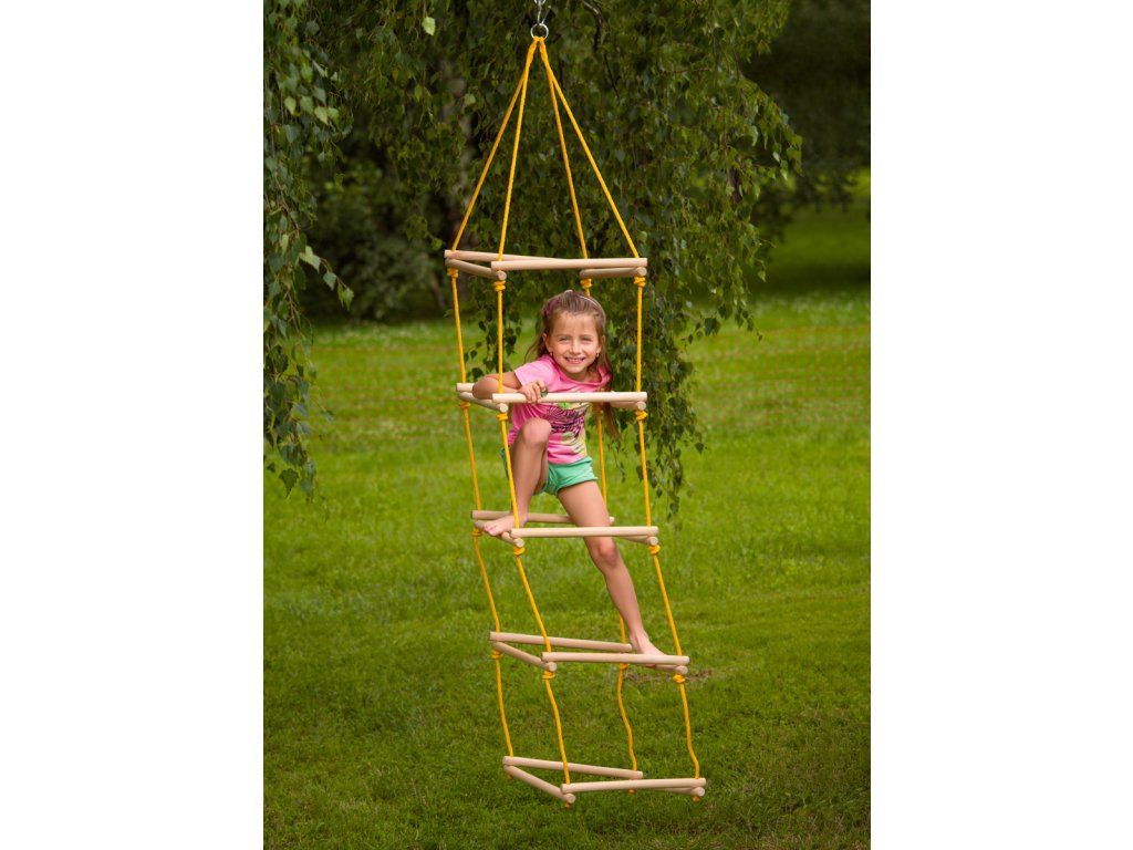 Štvorboký lanový rebrík je vyrobený z masívnych drevených tyčí a pevných lán. Je vhodný do exteriéru aj interiéru. Na zavesenie na bezpečnostný (najlepšie otočný) háčik (nie je súčasťou balenia). Nosnosť: 60 kg. Rozmery: 40 x 40 x 195 cm. Rozmery balenia: 21 x 21 x 45 cm. Vek: 3+Dodatočné parametre