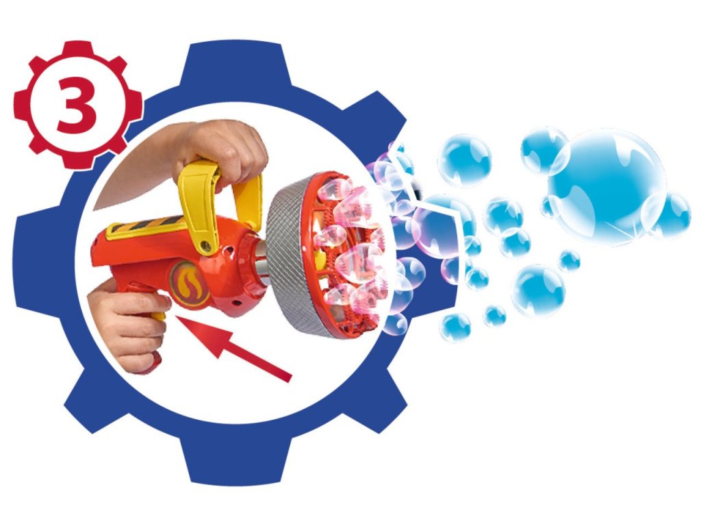 Delo v licencii požiarnik Sam s automatickou funkciu vytvárania bubliny. Veľkosť 21 cm. Náplň 120 ml.