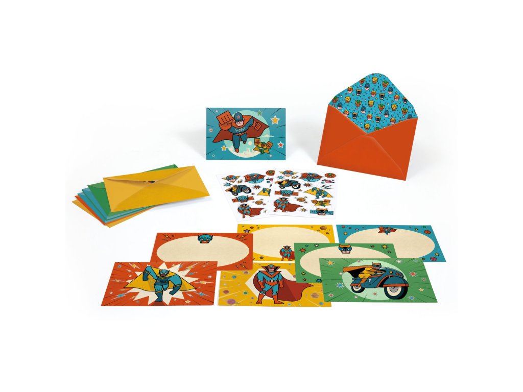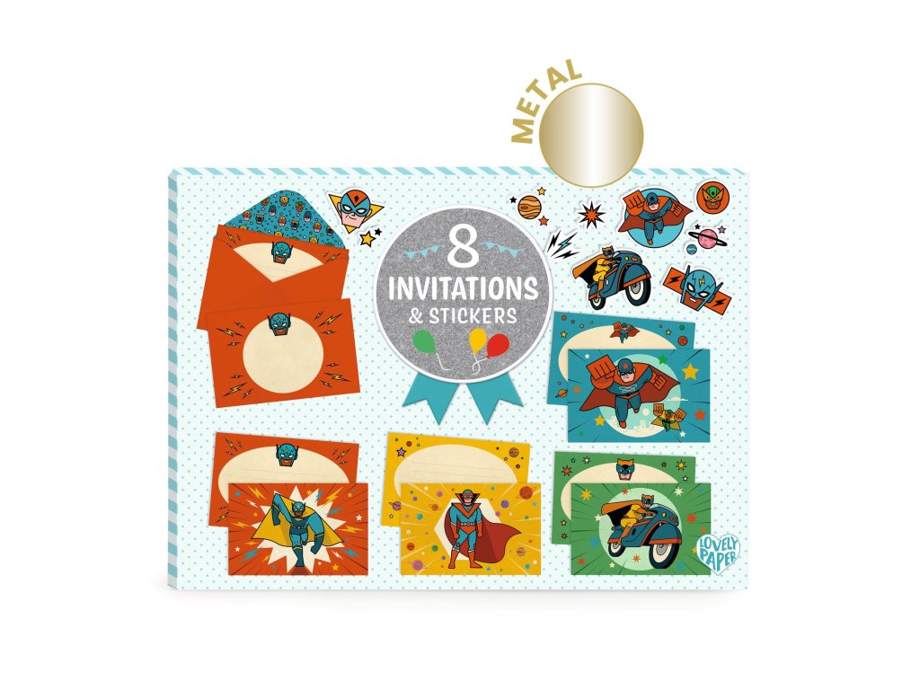 Pozvánky & samolepky Superhrdinovia Pozvi kamarátov ako superhrdina: štýlové pozvánky s obálkami a samolepkamiPozvánky & samolepky Superhrdinovia sú papierenská sada na detskú oslavu, vďaka ktorej pripravíš pozvánky rýchlo a s „wow“ efektom.V balení nájdeš 8 ilustrovaných pozvánok, 8 zladených obálok a 2 hárky samolepiek na dozdobenie.Kombinácia metalického efektu a matnej tlače zvýrazní farby a dodá pozvánkam originálny vzhľad.Rýchly prehľad odporúčaný vek: od 6 rokov téma: superhrdinovia počet pozvánok: 8 ks (4 dizajny po 2 kusy) v balení: pozvánky, obálky, 2 hárky samolepiekPrečo si ju deti zamilujú superhrdinský dizajn, ktorý okamžite navodí párty náladu samolepky na personalizáciu – každá pozvánka môže byť jedinečná metalické detaily dodajú pozvánkam prémiový vzhľad zladené obálky – všetko spolu dokonale ladíAko sa to používa Vyber pozvánku a dopíš dátum, čas, miesto a komu je určená. Dozdob ju samolepkami podľa nálady (meno, ikonky, „pow/bang“ štýl). Vlož pozvánku do obálky a môžeš rozdávať alebo posielať.Obsah balenia 8× pozvánka (4 dizajny po 2 kusy) 8× obálka (4 dizajny po 2 kusy) 2× hárok samolepiekTechnické parametre rozmery pozvánky: 16 × 11 cm rozmery balenia: 16,5 × 15 × 1 cm povrchová úprava: metalický efekt + matná tlač materiál: papier a kartón (FSC)Dodatočné parametre