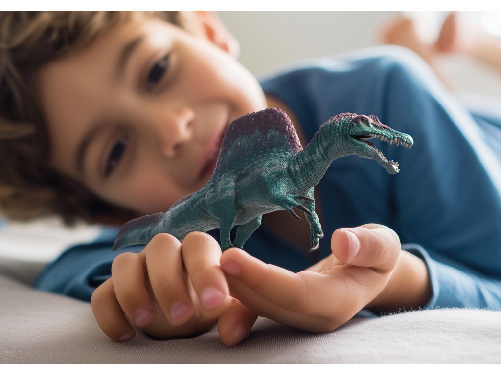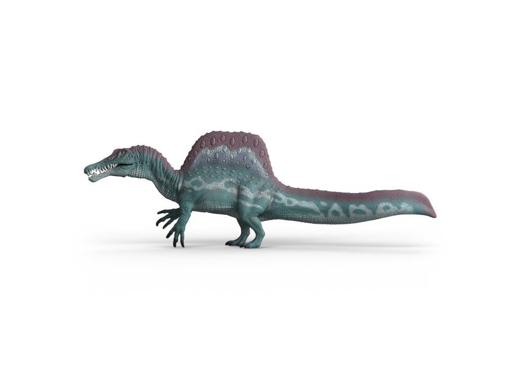 Nebezpečný Spinosaurus je opět na lovu a výhrůžně otevírá tlamu. Zavětřil snad kořist? Tomuhle prehistorickému obrovi je lepší se vyhnout, protože obrovský je i jeho hlad. Není divu: jako jeden z největších známých dinosaurů mohl dorůstat délky až 18 metrů a vážil až devět tun. Potřebuje proto pravidelný přísun potravy, a to ne zrovna malý. A pokud nechcete skončit mezi jeho mohutnými čelistmi, uhněte mu raději z cesty. Spinosaurus vypadá opravdu impozantně. Díky vysokému hrbu na hřbetě je vidět už z dálky. Jeho úžasná ještěří kůže se třpytí zelenou a fialovou barvou se světlým vzorem na boku. Lepší je ale se k tomuhle masožravci moc nepřibližovat. Když otevře čelisti, objeví se nebezpečně ostré tesáky. Figurka Schleich® patří do tematického světa DINOSAURUS a je vhodná pro děti od 4 do 12 let. Rozměry figurky: 6 x 11,7 x 33 cm. Nevhodné pro děti do 3 let. Věk: 4+Dodatočné parametre