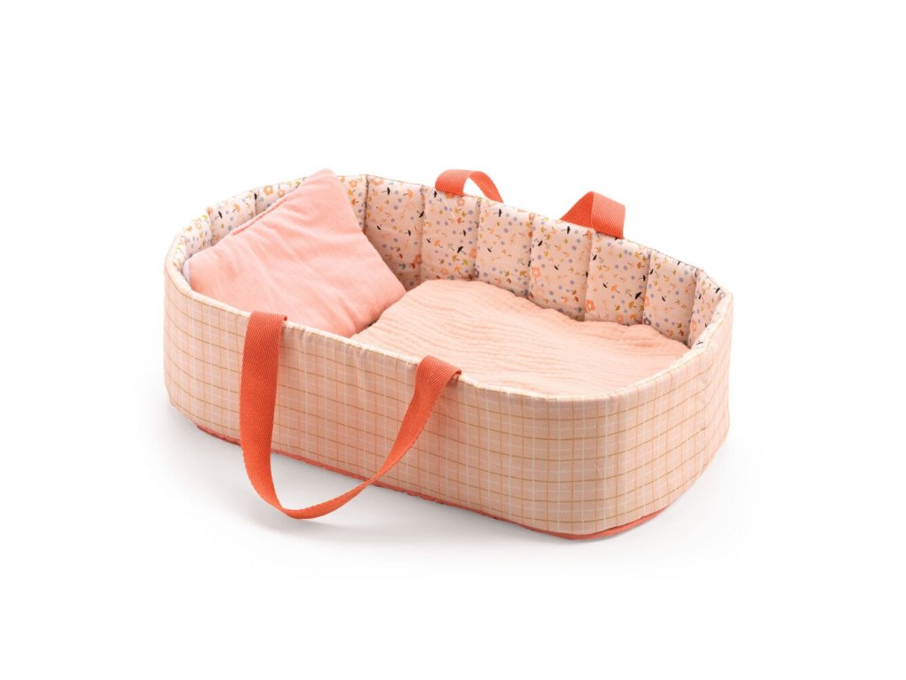Prenosná postieľka pre bábiky A ide sa na výlet s bábikou! Ľahké pohodlné hniezdočko pre bábiky veľkosti 30-36 cm. Hniezdočko s dvoma bočnými držadlami je praktickou prenosnou postieľkou, v ktorej môže bábätko bezpečne oddychovať.Postieľka z prešívanej bavlny je ľahká. Súčasťou je vankúšik a prikrývka z podšitej bavlny. Farby a vzory použitých látok sú vkusne zladené. Obsah: 1 hniezdočko, 1 vankúšik, 1 prikrývka. Rozmery: 36 x 22 x 10 cm.Dodatočné parametre