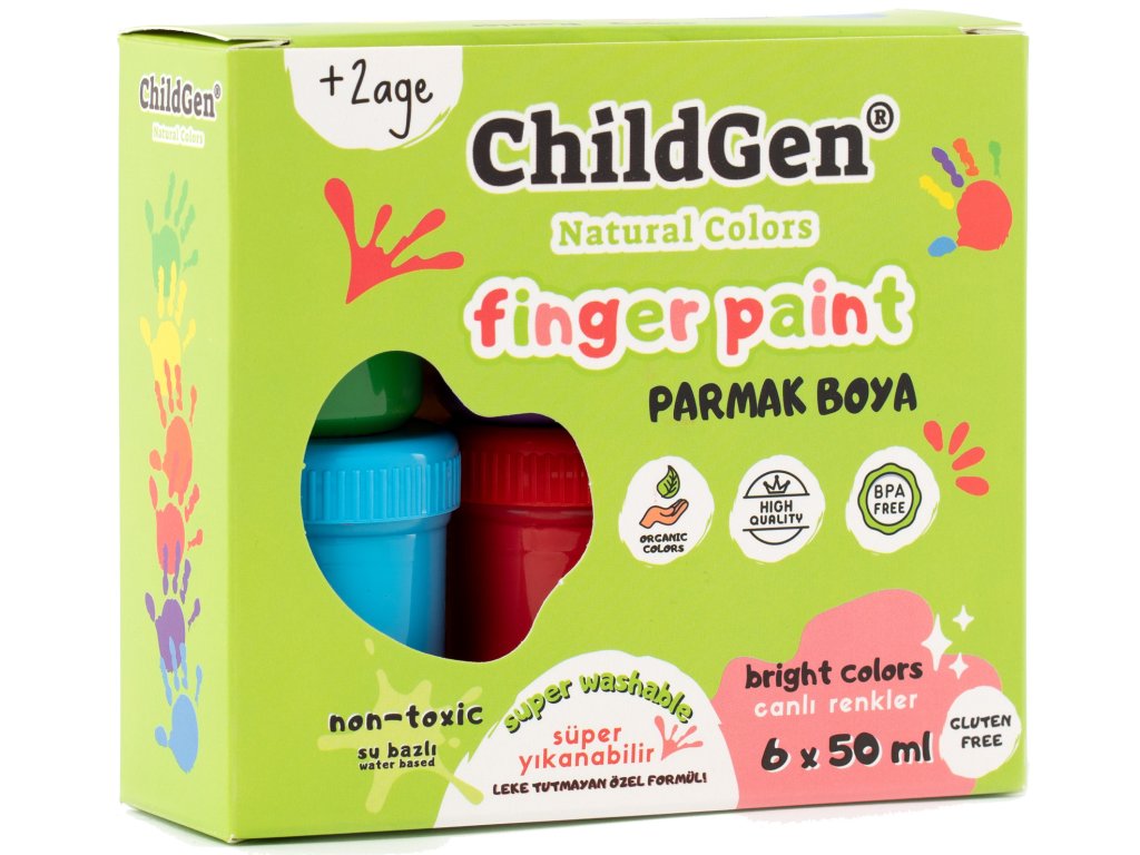 Prstové farby umývateľné 6 x 50 ml Maľuj svojimi odtlačkami prstov Objavte svet farieb s ChildGen Prstové farby umývateľné – 100 % prírodnými, netoxickými a ľahko umývateľnými farbami, ktoré rozvíjajú kreativitu a jemnú motoriku detí.Maľovanie bez stresu Žiarivé farby: 6 odtieňov, ktoré podnecujú predstavivosťBezpečné zloženie: Organické farbivá – vhodné pre deti od 3 rokovJednoduché čistenie: Farby sa ľahko zmývajú z pokožky, oblečenia aj nábytkuFarby, ktoré vedia, kam patria: Špeciálna receptúra zabezpečuje, že farby sa držia len na papieri a bez problémov sa odstraňujú z iných povrchovObjavte svet plný farieb a detskej fantázie Táto sada podporuje rozvoj jemnej motoriky, zmyslového vnímania a kreativity. Vďaka prírodnému zloženiu môžu deti tvoriť bez obáv, zatiaľ čo rodičia ocenia jednoduché čistenie.Dodatočné parametre