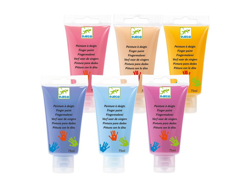 Prstové farby v tube – rozprávkové (6 ks)Kreatívne prstové farby pre deti – 6 rozprávkových odtieňov na maľovanie a tvorenieKreatívna sada prstových farieb v tubách – 6 ks od značky Djeco je ideálnym riešením pre prvé umelecké pokusy detí. Tieto farby sú navrhnuté tak, aby sa ľahko nanášali prstami, čo podporuje sebavedomé tvorenie bez potreby štetcov či komplikovaných pomôcok. Farby sa dajú použiť na papier, kartón alebo iné kreatívne materiály, takže deti môžu bez obmedzení experimentovať s formou, farbou a textúrou. Farby sa bez problémov umývajú z pokožky a textilu, sú netoxické a bezpečné pre deti, a vďaka pohodlným tubám ich deti samostatne dávkujú priamo na paletu alebo papier.Deti môžu pomocou tejto sady:maľovať priamo prstami, čím rozvíjajú hmatové vnímaniemaľovať rôzne tvary, vzory a abstraktné obrázkykombinovať farby a skúšať nové odtienetvoriť koláže a maľby podľa vlastnej fantázieObsah balenia6 tub prstových farieb (6 x 75 ml): modrá, tyrkysová, fialová, ružová, broskyňová, oranžováplastová paletka na farbyKaždá tubička obsahuje dostatočné množstvo farby, ktoré vystačí na viacero kreatívnych výtvorov.Čo deti pri tvorení rozvíjajújemnú motoriku a koordináciu oko–ruka, keď deti farbu nanášajú priamo prstamikreativitu a predstavivosť, keď kombinujú farby a tvarypozornosť pri vizuálnej tvorbe a experimentovaníPrečo si vybrať tieto prstové farbybezpečné a netoxické – vhodné pre deti už od ~2 rokovľahko sa umývajú vodou z pokožky aj oblečeniapohodlné tuby umožňujú presné dávkovanie farbyideálne pre domáce tvorenie, škôlky aj výtvarné dielnepodporujú prvú vizuálnu expresiu a tvorivé mysleniekvalitné farby značky Djeco, ktorá dbá na detskú bezpečnosťDodatočné parametre