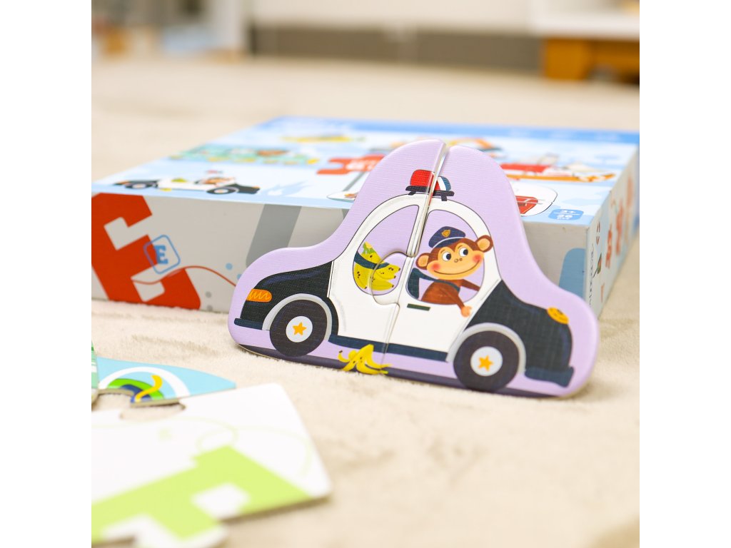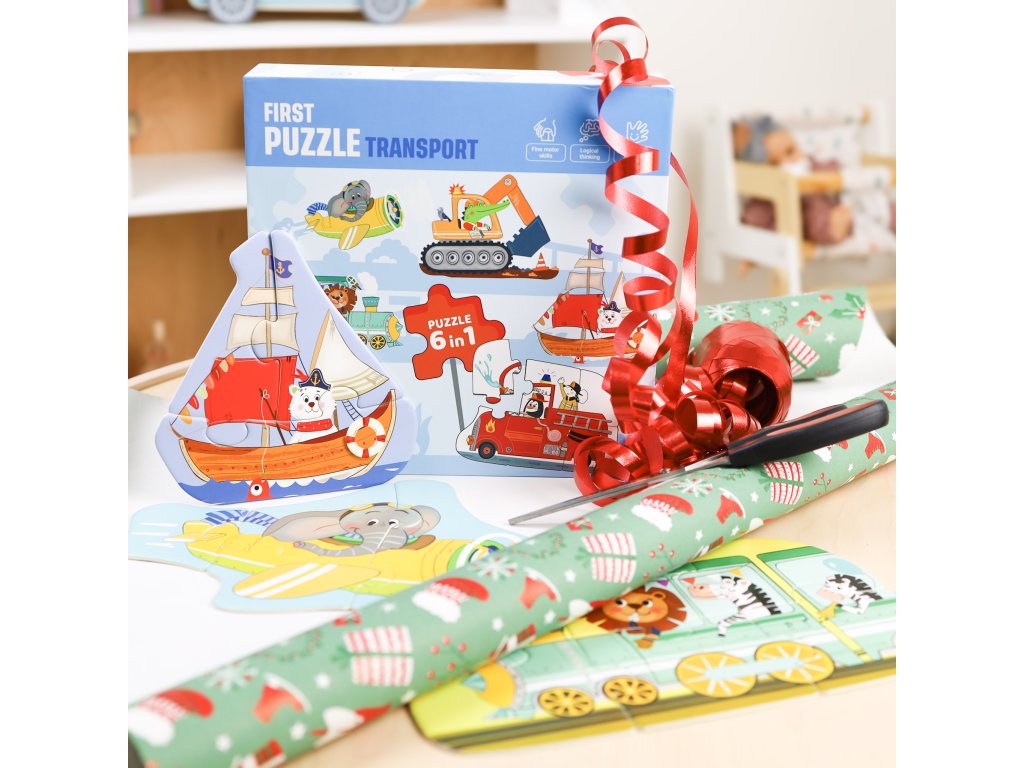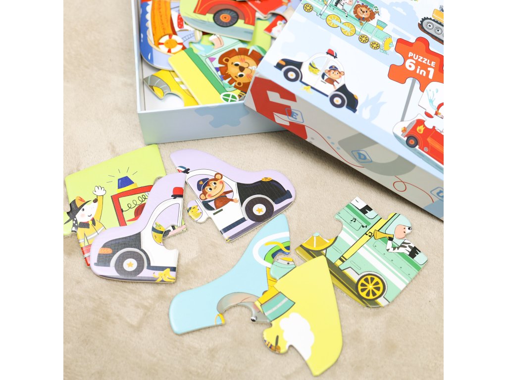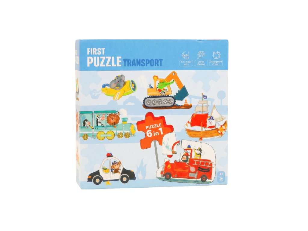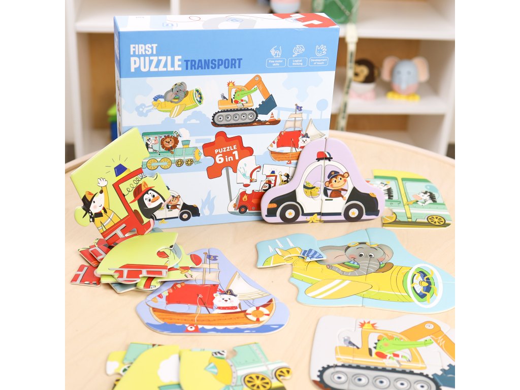 Prvé puzzle Doprava 6v1Objavte svet dopravy s veselými zvieratkami – ideálne prvé puzzle pre malé rúčky!Zoznámte svoje dieťa s fascinujúcim svetom dopravných prostriedkov hravou formou! Prvé puzzle pre deti Doprava 6v1 ponúkajú ideálnu kombináciu zábavy a učenia pre malých objaviteľov od 3 rokov.Každé puzzle predstavuje iný dopravný prostriedok, ktorý riadi veselé zvieratko – od policajného auta až po farebný vlak.6 puzzle v jednom balení – veľa zábavy a učenia v jednom!6 rôznych dopravných prostriedkov – policajné auto, loď, báger, lietadlo, hasiči a vlakRastúca obtiažnosť – puzzle od 2 do 6 dielikov pre postupné zlepšovanie schopnostíVhodné pre deti od 3 rokov – bezpečné, pevné dieliky ideálne pre malé rúčkyRozvíjajú jemnú motoriku, úchop a logické myslenieFarebné ilustrácie so zvieratkami, ktoré deti milujúSkvelý darček pre malých fanúšikov dopravných prostriedkov