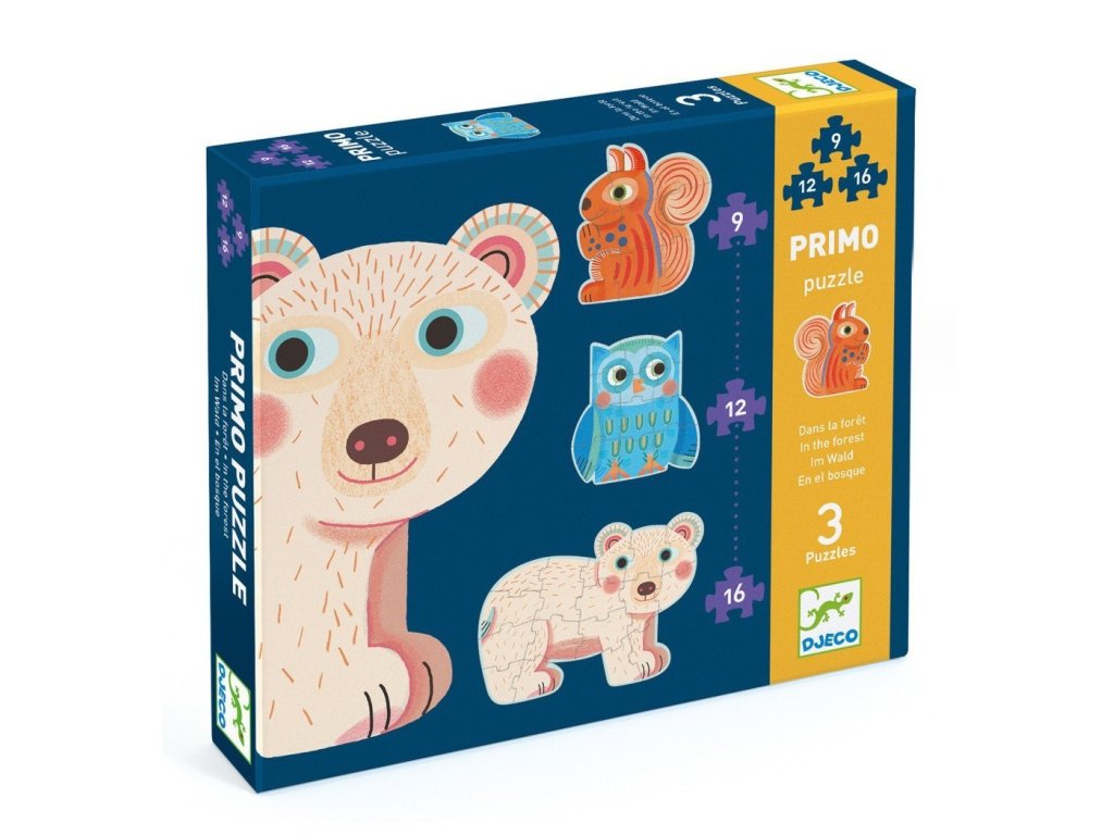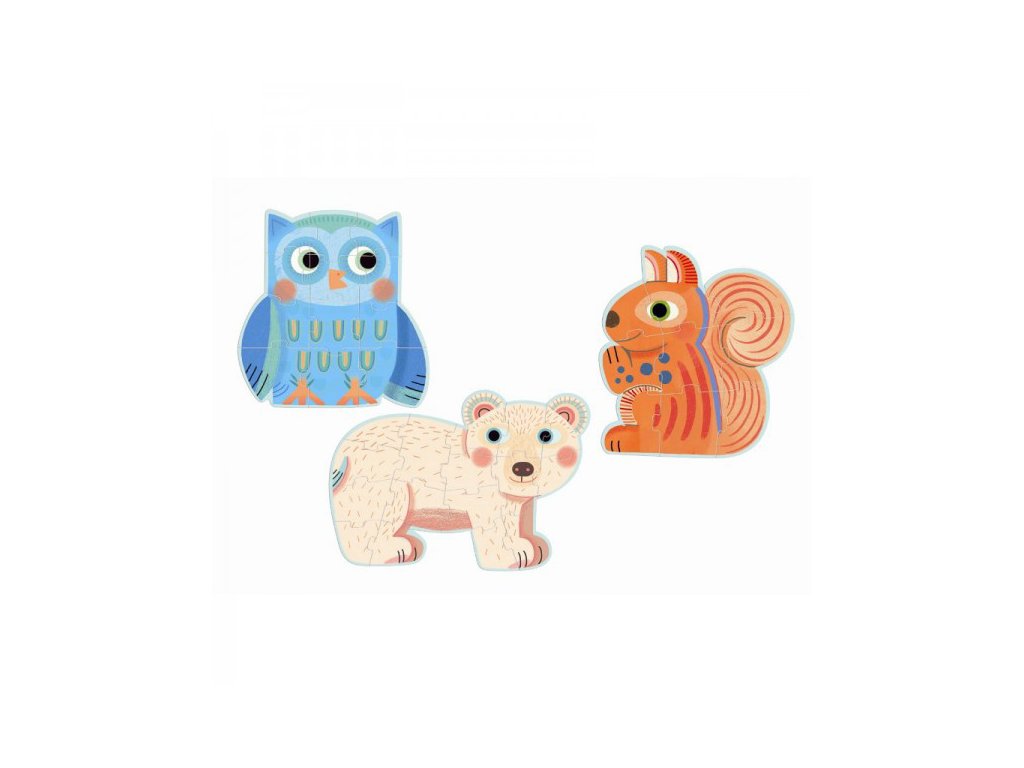 Puzzle so zvieratkami určené pre tých najmenších. Sada troch puzzle obrázkov, z ktorých si deti poskladajú polárneho medvedíka, veveričku a sovu. Puzzle obrázky sa skladajú z 9, 12 a 16 dielikov. Deti môžu na začiatok skladať obrázok s menším počtom dielikov, kým postupne prejdú na väčší obrázok.Rozvíja logické myslenie a jemnú motoriku. Puzzle sú obľúbenou zábavou detí, ktorá rozvíja logické myslenie, pamäť a predstavivosť. Zároveň si skladaním precvičujú jemnú motoriku.Dodatočné parametre
