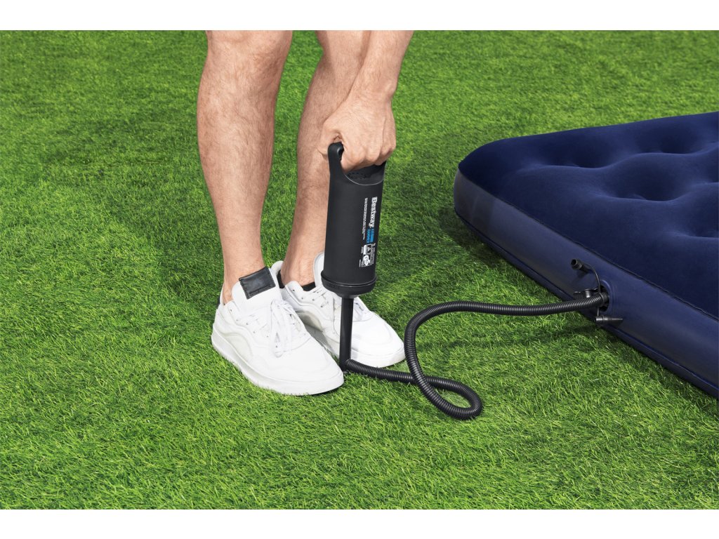 Spojte maximální výkon a efektivitu s pumpou Bestway® Air Hammer™ s dvojitým vratným pístem! S velikostí 30 cm a výtlakem 0,85 litru je navržena pro maximální průchod vzduchu. Nafukování pracuje pohybem nahoru i dolů, což zkracuje celý proces pumpování. Flexibilní 80 cm hadice a 3 různé adaptéry ventilů umožňují použití pumpy na mnoho různých nafukovacích předmětů. Bez ohledu na to, zda máte brouzdaliště, nafukovací matrace, čluny nebo hračky. Air Hammer™ se také snadno přepravuje a skladuje. Výška produktu: 30 cm. Rozměry balení: 30,5 x 11 x 9 cm.Dodatočné parametre