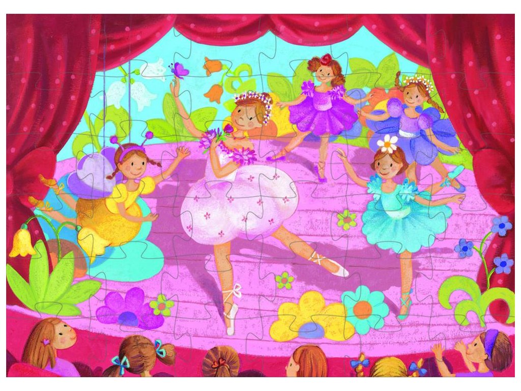 Puzzle Baletka 36 ks Puzzle pre malé baletky. Puzzle v tvarovanej škatuli, ktorá vďaka vhodnej veľkosti poslúži aj ako hračka – baletka.Puzzle v krásnej krabičke ktorá poslúži aj ako hračka. Krásne ilustrovaná škatuľa tohto puzzle je tvarovaná ako balerína, vďaka čomu sa s ňou môžeš hrať. Zároveň sa bude pekne vynímať na poličke v detskej izbe. Ideálny darček pre najmenšie slečny. Vnútri je 36 dielikov, z ktorých poskladáš puzzle zobrazujúce baletné vystúpenie.Počet dielikov: 36Rozmery puzzle: 42 x 30 cmDodatočné parametre