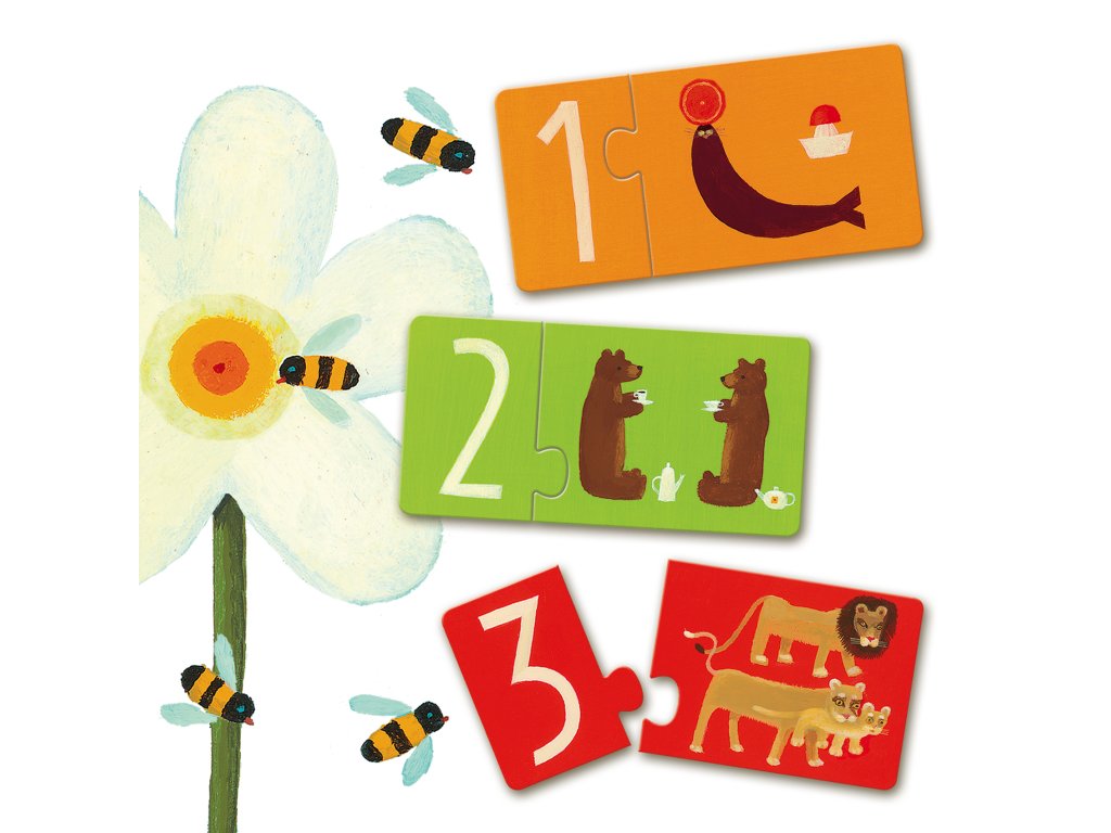 Puzzle Duo: ČíslaPrvé párovacie puzzle na učenie čísel pre detiPuzzle Duo – Čísla od značky Djeco sú jednoduché edukačné puzzle pre najmenšie deti, ktoré ich hravou formou zoznamujú so základnými číslami a počítaním. Každé puzzle tvorí dvojica dielikov – číslo a zodpovedajúci počet zvieratiek na obrázku, ktoré k sebe logicky patria. Deti sa pri skladaní učia spájať čísla s množstvom, rozvíjajú pozorovanie a získavajú prvé matematické základy prirodzeným spôsobom. Veľké a pevné dieliky sú ideálne pre malé ruky a podporujú samostatnú hru.Čo si dieťa pri hre rozvíjazákladné počítanie a číslapochopenie vzťahu číslo – množstvologické mysleniejemnú motoriku a koordináciu ruka–okosústredenie a trpezlivosťPrečo si vybrať Puzzle Duo – Čísla od Djecoideálne ako prvé matematické puzzlejednoduchý a zrozumiteľný princíppevné kartónové dielikyhravé ilustrácie typické pre Djecovhodné pre deti od cca 2 rokovObsah balenia10 dvojdielnych puzzle (spolu 20 dielikov)Dodatočné parametre