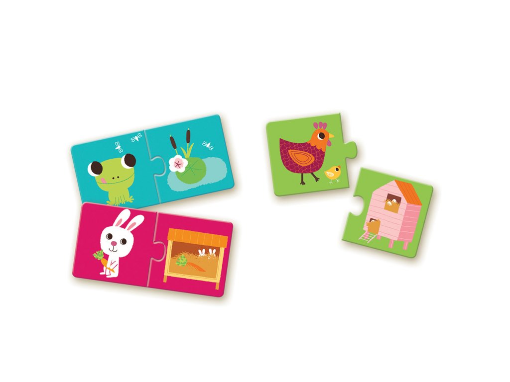 Puzzle duo Kde žijú zvieratká Vieš kde bývajú zvieratká? Krásne ilustrované puzzle bude deti vzdelávať a zoznamovať so svetom zvieratiek. Balenie obsahuje 20 dielikov puzzle, z ktorých vytvoríte 10 obrázkov zobrazujúcich zvieratko a jeho obydlie. Deťom samozrejme nič nebráni vo vytvorení si vlastných príbehov a kombinácií s obrázkami. Nádherne ilustrované dvojdielne puzzle rozvíja jemnú motoriku a logiku. Puzzle pre rozvoj kreativity sú obľúbenou zábavou detí, ktorá rozvíja logické myslenie, pamäť a predstavivosť. Zároveň si skladaním precvičujú jemnú motoriku. 10 puzzle (20 kusov).Dodatočné parametre