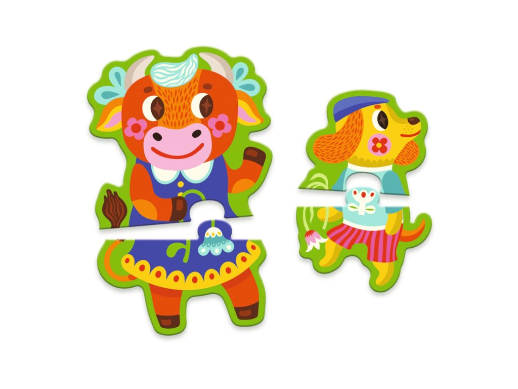 Puzzle Veľké a malé zvieratká farmy 16 ks Siluetové puzzle so zvieratkami Toto edukačné siluetové puzzle je ideálnym nástrojom na rozvoj pozorovacej schopnosti a sústredenia u predškolákov. Deti sa naučia usporiadať 8 dvojdielnych puzzle podľa veľkosti zvierat – od najväčšieho po najmenšie. Na každej kartičke sú ilustrované zvieratká, ktoré predstavujú rôzne farmárske postavičky v pestrofarebných odevoch. Puzzle je autokorekčné, čo znamená, že správne spojiť sa dajú len príslušné dvojice, čo deti motivuje k samostatnosti.Toto veľké a odolné puzzle je vyrobené z kvalitnej ekologickej lepenky s certifikátom FSC®, čo zaručuje, že sú bezpečné a šetrné k životnému prostrediu. Praktická škatula s povrázkom na nosenie umožňuje, aby sa puzzle mohlo vziať kamkoľvek, čo je skvelé pre hranie doma i na cestách. Obrázková karta so zvieratkami pomôže deťom správne skladať puzzle, čím sa zábavnou formou rozvíja aj ich kreativita a schopnosť riešiť problémy.Dodatočné parametre