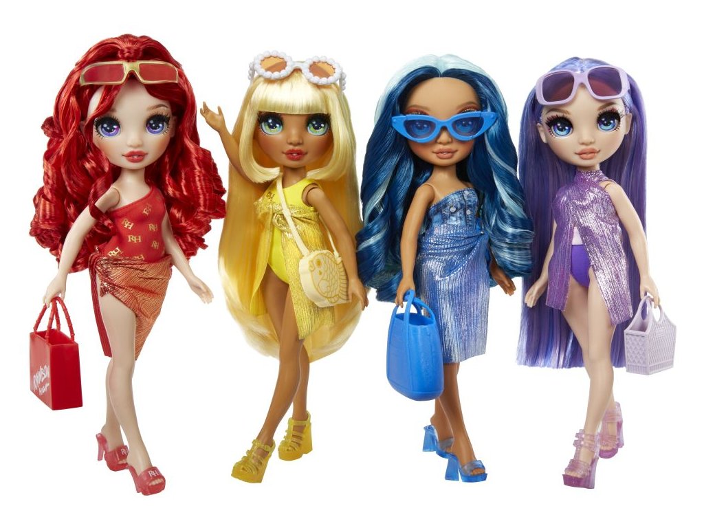 Farby dúhy sú nekonečné a v lete žiaria najlepšie. 4 obľúbené Fashion bábiky sa teraz ukážu v plavkách. Bábiky majú opäť nádherné dlhé česateľné vlásky a dlhé riasy. V balení nájdeš množstvo doplnkov a šatku, s ktorou vytvoríš viac ako 10 lookov. Obsah balenia: • 1 zo 4 bábik v plavkách • letné doplnky (okuliare, kabelka, topánky a ďalšie) Veľkosť bábiky: cca 28 cm.Dodatočné parametre