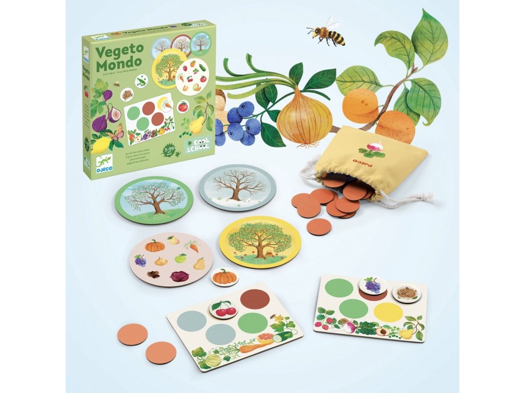 Rastliny sveta (Vegeto Mondo): určovanie ročných obdobíEdukačná hra na určovanie ročných období a rastlínRastliny sveta – Vegeto Mondo je náučná hra pre deti, ktorá ich zoznamuje s rastlinami z rôznych častí sveta a s tým, v ktorom ročnom období rastú alebo sa zbierajú. Deti prikladajú ilustrované dieliky rastlín na správne herné dosky podľa ročných období a učia sa vnímať prírodu v širších súvislostiach. Hra podporuje pozorovanie, logické myslenie a rozširovanie vedomostí o prírode. Vďaka jasným ilustráciám a jednoduchému princípu je vhodná na samostatnú hru aj na spoločné hranie s rodičmi či v kolektíve.Ako sa hra hráCieľom hry je správne priradiť plody z žetónov k jednotlivým ročným obdobiam, ktoré sú znázornené farebnými kruhmi na herných kartách. Správnosť priradenia si hráči môžu skontrolovať na rubovej strane veľkých kruhových kariet s ilustráciou stromu. Hráč, ktorý ako prvý zaplní všetky farebné kruhy na svojej loto doske správnymi žetónmi s plodmi, vyhráva.Čo hra rozvíjapoznávanie rastlín a prírodypochopenie ročných obdobílogické myslenie a triedeniepozornosť a sústredenieslovnú zásobu a všeobecný prehľadPrečo si vybrať Vegeto Mondo od Djecoučenie o prírode hravou formouprehľadné a realistické ilustráciejednoduché pravidlá vhodné pre detiideálne pre domácu výučbu aj školyvhodné pre deti od cca 5 rokovpočet hráčov: 1–6trvanie hry: 15 minútObsah baleniaherné dosky s ročnými obdobiamiilustrované kartičky rastlín z celého svetanávod na hruvreckoDodatočné parametre