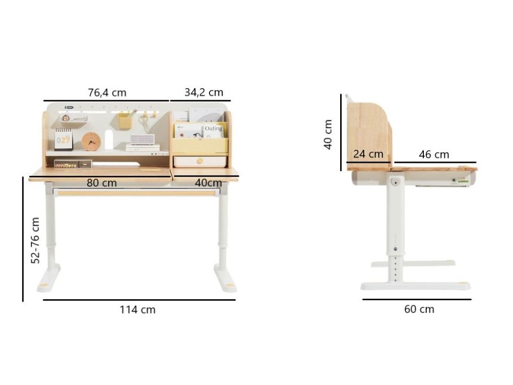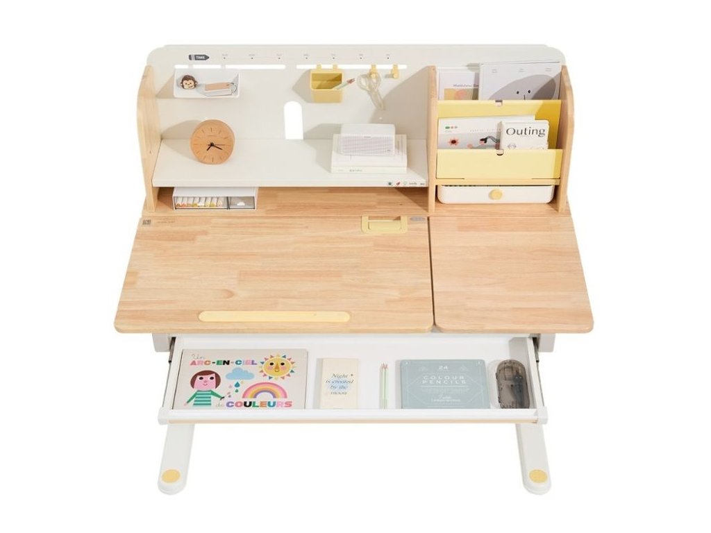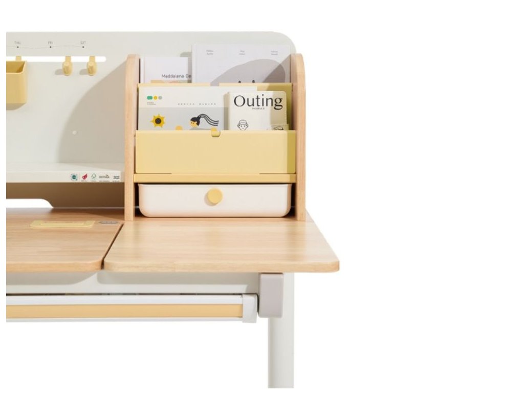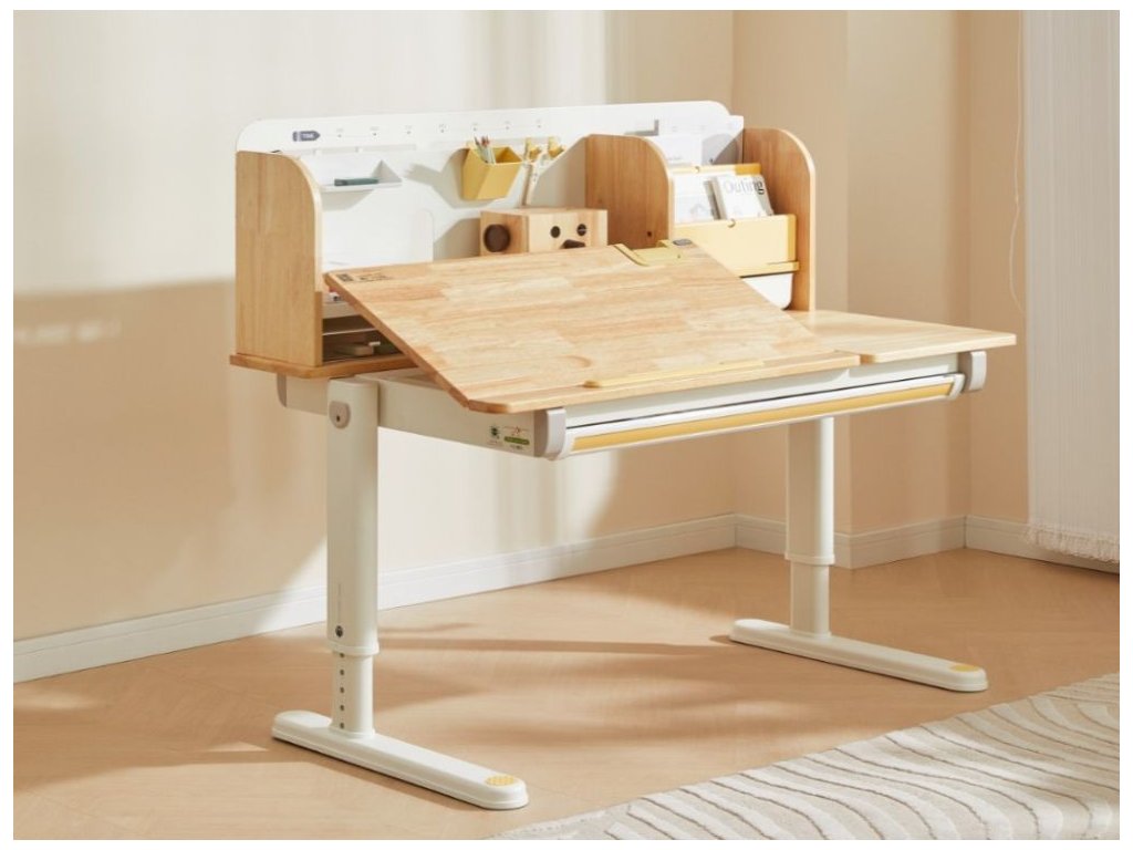 Nastaviteľný rastúci písací stôl pre najmenších aj väčšie deti Kvalitný písací stôl v ergonomickom dizajne neodmysliteľne patrí do detskej izby. Detský písací stôl v kombinácii prírodného dreva s bielou a žltou farbou, s policami a zásuvkami, s veľkou pracovnou plochou, umožní deťom kresliť si, písať, učiť sa aj tvoriť a pritom mať maximálne pohodlie a komfort. Vďaka rastúcej funkcii - možnosti nastavenia výšky pracovnej dosky tento stôl doslova porastie s vašim dieťaťom. Výšku môžete nastaviť jednoducho a rýchlo, ručne. Deti tak môžu pri stole nielen sedieť, ale aj stáť. Časť dosky stola je navyše sklopná, takže napríklad kreslenie alebo čítanie bude veľmi pohodlné. Priamo pod doskou stola sa skrýva veľká zásuvka na školské, písacie alebo výtvarné potreby. Z ďalších úložných priestorov nad doskou stola - políc a šuplíka, budú deti nadšené. Priamo nabáda na vystavenie obľúbenej knihy, rodinnej fotografie, talizmanov, pokladov a všetkého, čo sa do zásuviek nezmestilo. Kvalitné materiály zaručujú vysokú stabilitu, odolnosť aj životnosť. Písací stôl bude vaše dieťatko sprevádzať detstvom, predškolskou prípravou a obdobím štúdií na základnej aj strednej škole. Prečo vybrať tento detský písací stôl: Kvalitná výroba - ekologická masívne drevo, prémiová oceľ a kvalitné materiály. Ekologické materiály - detský stôl je vyrobený z ekologického kaučukového dreva, s certifikátom FSC. Ergonomický dizajn - možnosť výškového nastavenia prispôsobí výšku stola každému dieťaťu, umožní mu pri stole sedieť aj stáť. Výškovo nastaviteľný (rastúci) - jednoducho, ručne, nastavíte výšku pracovnej dosky v rozmedzí 52 - 76 cm. Sklopný - časť pracovnej dosky je možné sklopiť. Viacero možností použitia - deti môžu stôl používať v sede aj v stoji. Štýlový - vďaka jednoduchému dizajnu a použitej kombinácii prírodného dreva s bielou a žltou farbou je detský písací stôl vhodný do každej detskej izby. Veľká pracovná plocha - pracovná doska ponúka dostatok priestoru na maľovanie, písanie, učenia sa aj tvorenie. Pevný a stabilný - kvalitná konštrukcia z prémiovej uhlíkovej ocele a konštrukčné riešenie zaisťuje pevnosť aj stabilitu. Dlhá životnosť - vďaka použitým kvalitným a odolným materiálom vydrží stôl vášmu dieťaťu naozaj dlho. Stôl je vhodný pre deti vo veku od 3 do cca 18 rokov. Veľká zásuvka - zásuvka (šuplík) pod doskou stola ponúka dostatok priestoru na uloženie písacích, školských alebo výtvarných potrieb. Police a šuplík - množstvo úložného priestoru nad doskou stola umožní deťom uložiť si všetko čo pri učení a tvorení potrebujú, vystaviť si obľúbené knihy, fotografie, talizmany alebo poklady. Jednoduchá a rýchla montáž. Technické parametre: Rozmer: 52 - 76 x 70 x 120 cm (výška x hĺbka x šírka), ostatné rozmery vo fotogalérii. Rozmer balenia: 18,3 x 79 x 129 cm. Výška pracovnej dosky: 52 - 76 cm (výškovo nastaviteľná). Hmotnosť: 32,6 kg. Hmotnosť balenia: 36,4 kg. Materiál: masívne kaučukové drevo, stredne uhlíková oceľ, plast. Farba: prírodné drevo, biela, žlté prvky. Certifikáty a normy: CE, FSC. Odporúčaný vek: od 3 do cca 18 rokov. Upozornenie: Dekorácie a doplnky na fotografiách nie sú súčasťou balenia. Pri umiestnení písacieho stola sa snažte vyhnúť priamemu slnečnému žiareniu, udržujte určitú vzdialenosť od kúrenia. Horúce hrnčeky, misky apod. nie je možné pokladať priamo na písací stôl, došlo by k znehodnoteniu nábytku, deformácii, zmene farby, popáleniu nábytku a vytvorili by sa nevzhľadné stopy. Pri písaní tvrdým perom sa odporúča položiť na stôl podložku, ktorá ochráni pracovnú plochu a zabráni jej poškrabaniu. Neutierajte stôl vlhkou alebo hrubou handričkou. Nepokladajte na stôl veci s kvapkami vody, ako sú mokré handričky, poháriky s vodou apod. Na utieranie škvŕn na písacom stole nepoužívajte alkohol, benzín alebo iné chemické rozpúšťadlá. eliNeli je česká značka drevených hračiek a nábytku s jedinečným farebným dizajnom a so zahraničnou výrobou. Produkty eliNeli rozvíjajú kreativitu a pohybový potenciál detí, skvele zapadnú do interiéru a vracajú sa k tradičnému materiálu — k drevu. Unikátna na značke je dizajnová kombinácia prírodných a neskorých letných až jesenných farieb, ktoré sa hodia do minimalistického scandi interiéru, a ktoré inde nenájdete. To všetko za veľmi dostupné ceny. Viac o produktoch eliNeli nájdete na: https://www.elineli.eu/sk/.