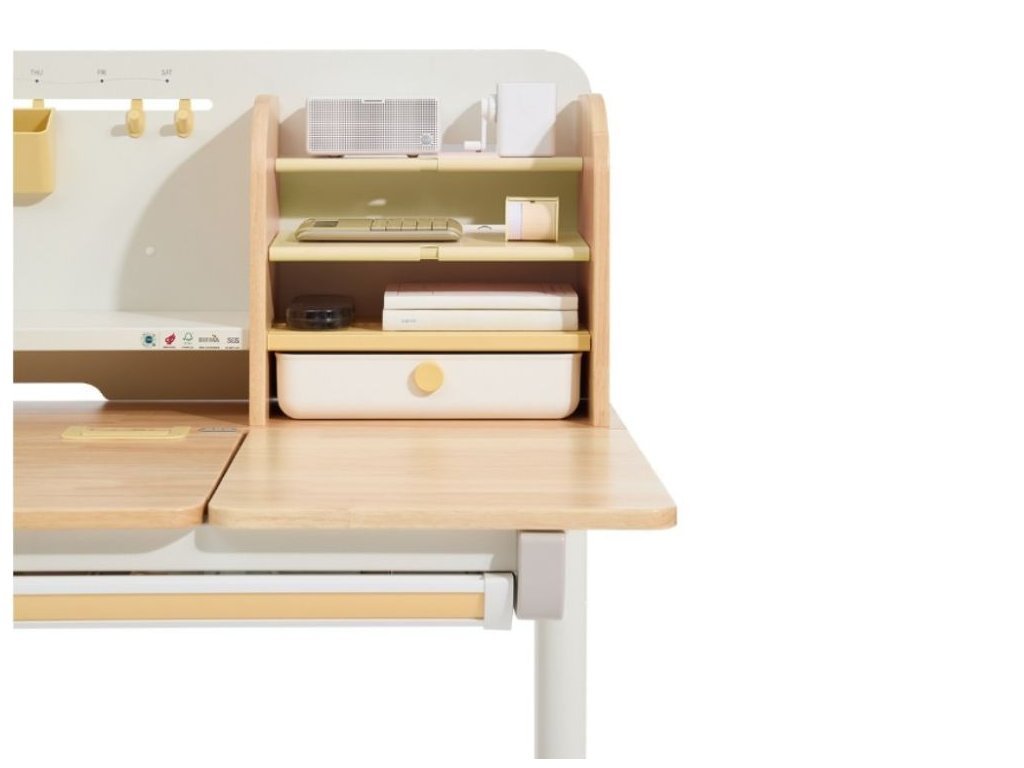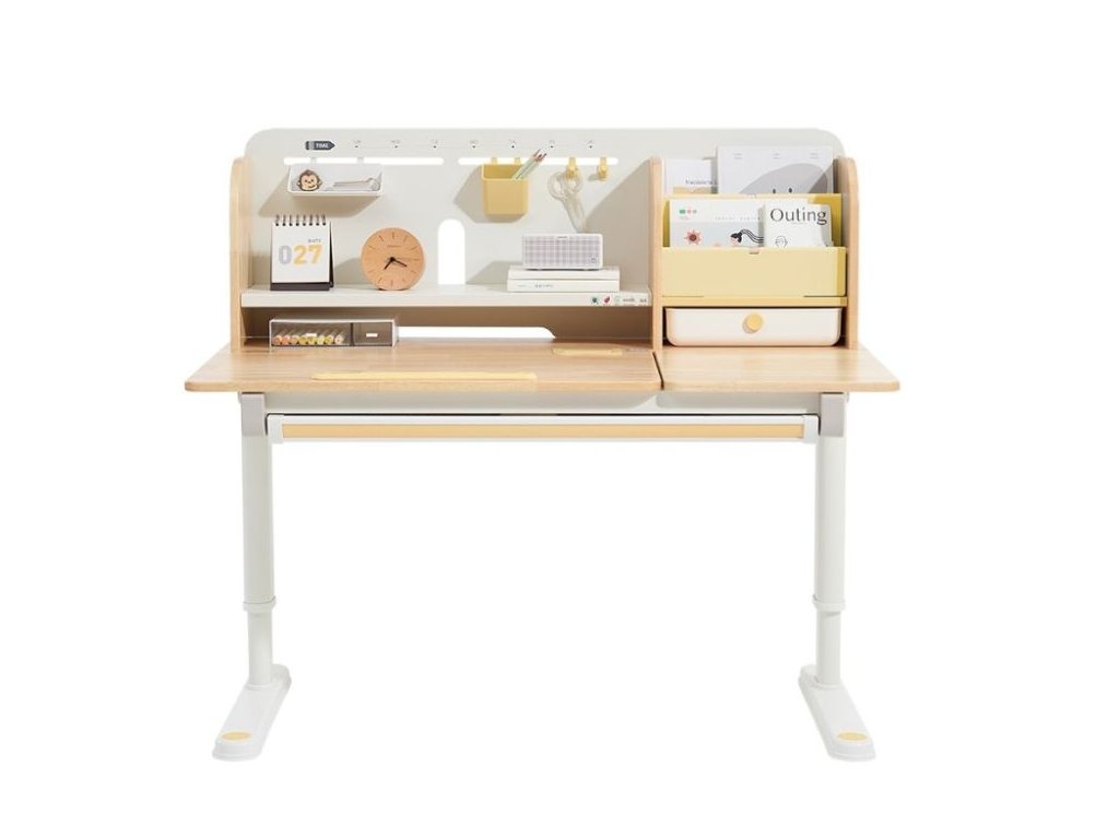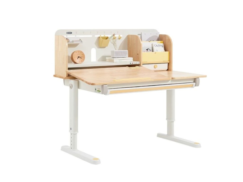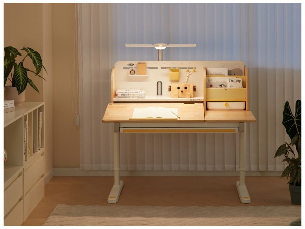 Nastaviteľný rastúci písací stôl pre najmenších aj väčšie deti Kvalitný písací stôl v ergonomickom dizajne neodmysliteľne patrí do detskej izby. Detský písací stôl v kombinácii prírodného dreva s bielou a žltou farbou, s policami a zásuvkami, s veľkou pracovnou plochou, umožní deťom kresliť si, písať, učiť sa aj tvoriť a pritom mať maximálne pohodlie a komfort. Vďaka rastúcej funkcii - možnosti nastavenia výšky pracovnej dosky tento stôl doslova porastie s vašim dieťaťom. Výšku môžete nastaviť jednoducho a rýchlo, ručne. Deti tak môžu pri stole nielen sedieť, ale aj stáť. Časť dosky stola je navyše sklopná, takže napríklad kreslenie alebo čítanie bude veľmi pohodlné. Priamo pod doskou stola sa skrýva veľká zásuvka na školské, písacie alebo výtvarné potreby. Z ďalších úložných priestorov nad doskou stola - políc a šuplíka, budú deti nadšené. Priamo nabáda na vystavenie obľúbenej knihy, rodinnej fotografie, talizmanov, pokladov a všetkého, čo sa do zásuviek nezmestilo. Kvalitné materiály zaručujú vysokú stabilitu, odolnosť aj životnosť. Písací stôl bude vaše dieťatko sprevádzať detstvom, predškolskou prípravou a obdobím štúdií na základnej aj strednej škole. Prečo vybrať tento detský písací stôl: Kvalitná výroba - ekologická masívne drevo, prémiová oceľ a kvalitné materiály. Ekologické materiály - detský stôl je vyrobený z ekologického kaučukového dreva, s certifikátom FSC. Ergonomický dizajn - možnosť výškového nastavenia prispôsobí výšku stola každému dieťaťu, umožní mu pri stole sedieť aj stáť. Výškovo nastaviteľný (rastúci) - jednoducho, ručne, nastavíte výšku pracovnej dosky v rozmedzí 52 - 76 cm. Sklopný - časť pracovnej dosky je možné sklopiť. Viacero možností použitia - deti môžu stôl používať v sede aj v stoji. Štýlový - vďaka jednoduchému dizajnu a použitej kombinácii prírodného dreva s bielou a žltou farbou je detský písací stôl vhodný do každej detskej izby. Veľká pracovná plocha - pracovná doska ponúka dostatok priestoru na maľovanie, písanie, učenia sa aj tvorenie. Pevný a stabilný - kvalitná konštrukcia z prémiovej uhlíkovej ocele a konštrukčné riešenie zaisťuje pevnosť aj stabilitu. Dlhá životnosť - vďaka použitým kvalitným a odolným materiálom vydrží stôl vášmu dieťaťu naozaj dlho. Stôl je vhodný pre deti vo veku od 3 do cca 18 rokov. Veľká zásuvka - zásuvka (šuplík) pod doskou stola ponúka dostatok priestoru na uloženie písacích, školských alebo výtvarných potrieb. Police a šuplík - množstvo úložného priestoru nad doskou stola umožní deťom uložiť si všetko čo pri učení a tvorení potrebujú, vystaviť si obľúbené knihy, fotografie, talizmany alebo poklady. Jednoduchá a rýchla montáž. Technické parametre: Rozmer: 52 - 76 x 70 x 120 cm (výška x hĺbka x šírka), ostatné rozmery vo fotogalérii. Rozmer balenia: 18,3 x 79 x 129 cm. Výška pracovnej dosky: 52 - 76 cm (výškovo nastaviteľná). Hmotnosť: 32,6 kg. Hmotnosť balenia: 36,4 kg. Materiál: masívne kaučukové drevo, stredne uhlíková oceľ, plast. Farba: prírodné drevo, biela, žlté prvky. Certifikáty a normy: CE, FSC. Odporúčaný vek: od 3 do cca 18 rokov. Upozornenie: Dekorácie a doplnky na fotografiách nie sú súčasťou balenia. Pri umiestnení písacieho stola sa snažte vyhnúť priamemu slnečnému žiareniu, udržujte určitú vzdialenosť od kúrenia. Horúce hrnčeky, misky apod. nie je možné pokladať priamo na písací stôl, došlo by k znehodnoteniu nábytku, deformácii, zmene farby, popáleniu nábytku a vytvorili by sa nevzhľadné stopy. Pri písaní tvrdým perom sa odporúča položiť na stôl podložku, ktorá ochráni pracovnú plochu a zabráni jej poškrabaniu. Neutierajte stôl vlhkou alebo hrubou handričkou. Nepokladajte na stôl veci s kvapkami vody, ako sú mokré handričky, poháriky s vodou apod. Na utieranie škvŕn na písacom stole nepoužívajte alkohol, benzín alebo iné chemické rozpúšťadlá. eliNeli je česká značka drevených hračiek a nábytku s jedinečným farebným dizajnom a so zahraničnou výrobou. Produkty eliNeli rozvíjajú kreativitu a pohybový potenciál detí, skvele zapadnú do interiéru a vracajú sa k tradičnému materiálu — k drevu. Unikátna na značke je dizajnová kombinácia prírodných a neskorých letných až jesenných farieb, ktoré sa hodia do minimalistického scandi interiéru, a ktoré inde nenájdete. To všetko za veľmi dostupné ceny. Viac o produktoch eliNeli nájdete na: https://www.elineli.eu/sk/.
