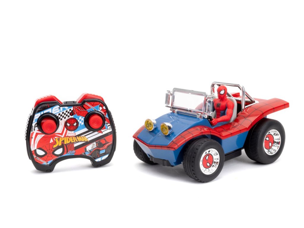 RC Marvel Spiderman Buggy v mierke 1:24. 2 kanál, 2,4 GHz, turbo, USB nabíjanie. Rýchlosť 9 km/h. Súčasťou je neodnímateľná figúrka Spidermana. Dĺžka 19 cm.Dodatočné parametre