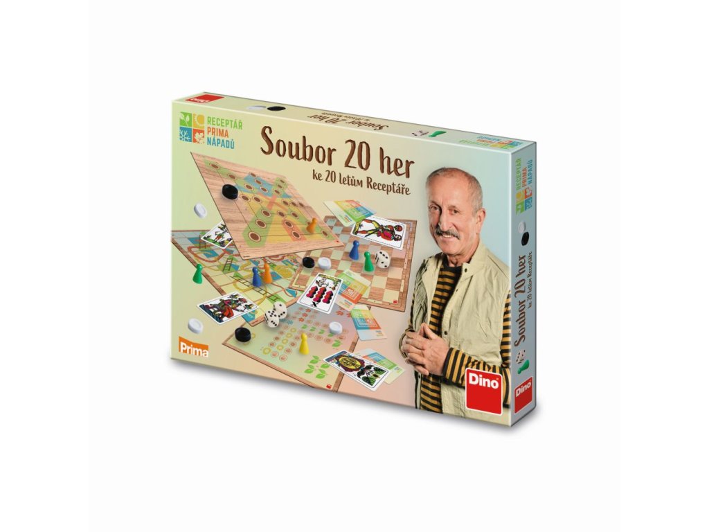 Súbor dvadsiatich najlepších klasických hier s tematikou populárneho televízneho programu RECEPTÁR PRIMA NÁPADOV. Halma, dáma, prší, mlyn, bláznivé aj klasické Človeče a mnoho ďalších super hier pre deti i dospelých sa schovávajú v balíčku, z ktorého obalu sa na vás usmieva herec a súčasný moderátor receptára, Oldřich Navrátil. Hry sú určené pre 1 až 6 hráčov. Vek 8+.Dodatočné parametre