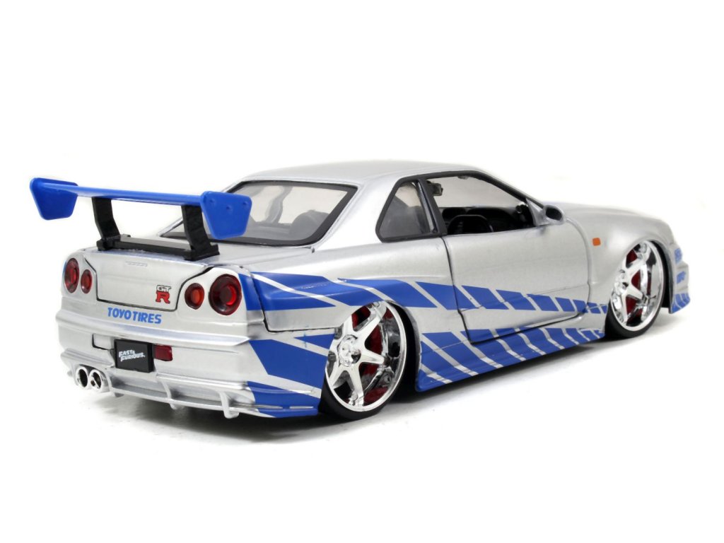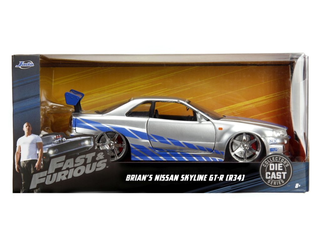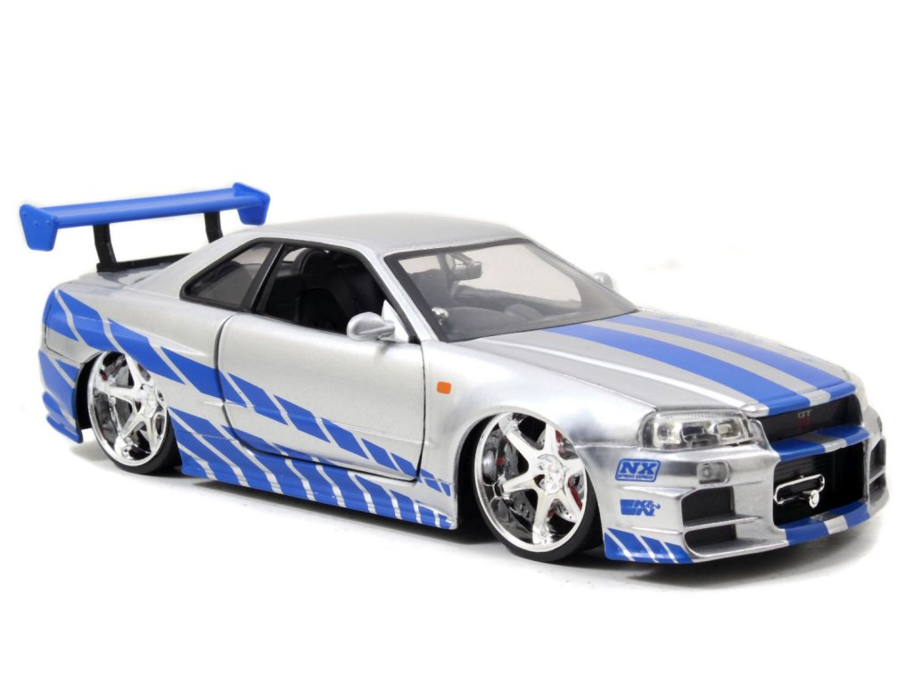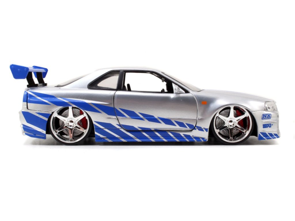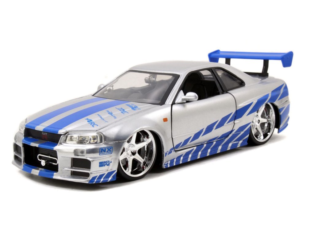 Kovový model auta z filmu Rýchlo a zbesilo - GTR-R R34 na voľnobeh v mierke 1:24, otváracie dvere, kufor a kapota, dĺžka 19 cm.Dodatočné parametre