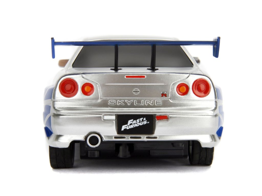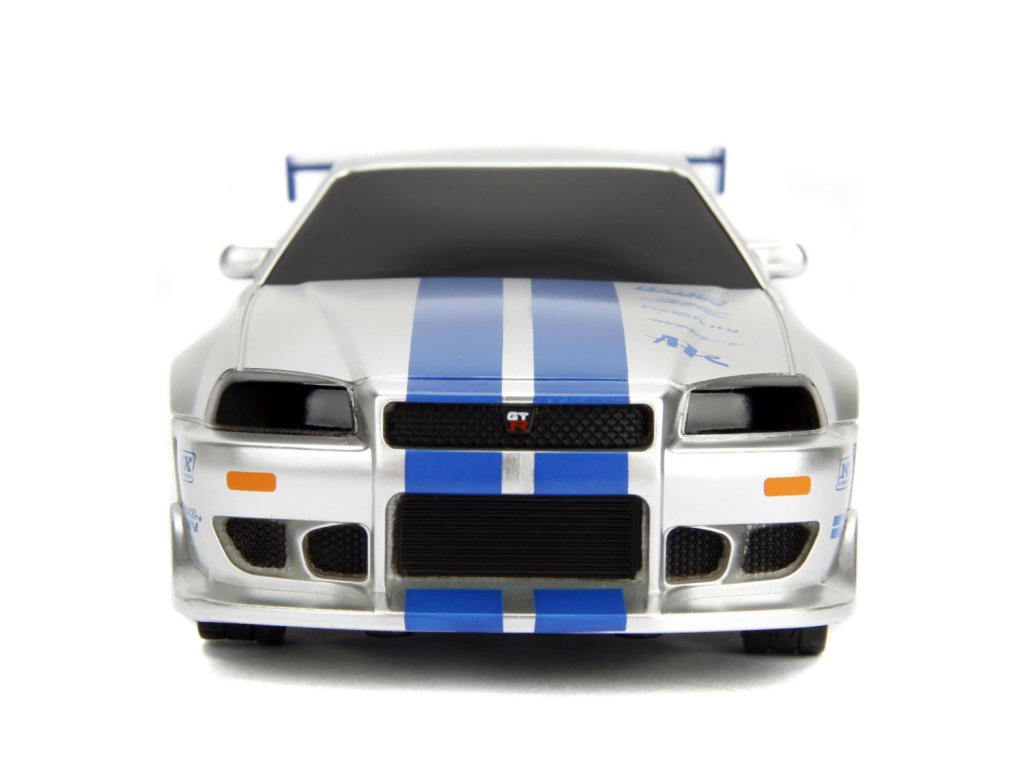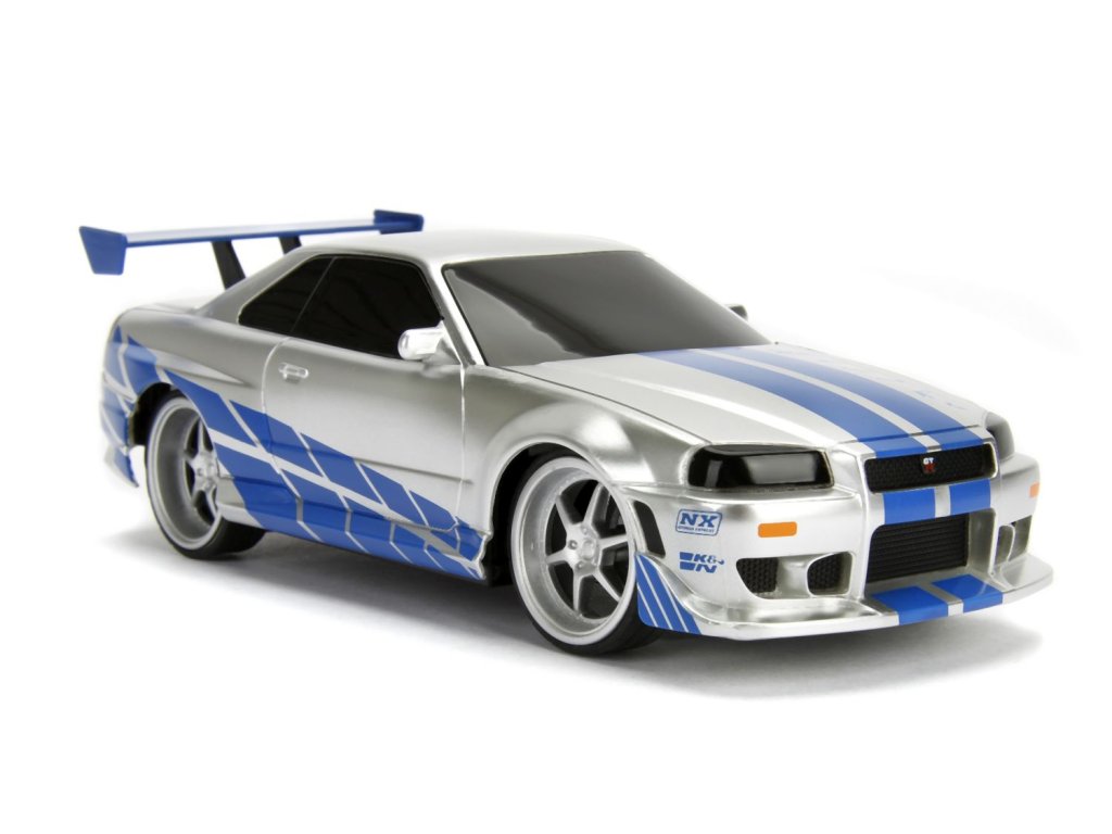 Brianovo auto Nissan Skyline GT-R (BNR34) na diaľkové ovládanie z akčného filmu Rýchlo a zbesilo. 2 kanály (jazdia vpred, vzad, vľavo a vpravo). Frekvencia 2,4 GHz. Turbo funkcie. Maximálna rýchlosť 8,2 km/hod. Farba strieborná a modrá. V mierke 1:24.Dodatočné parametre