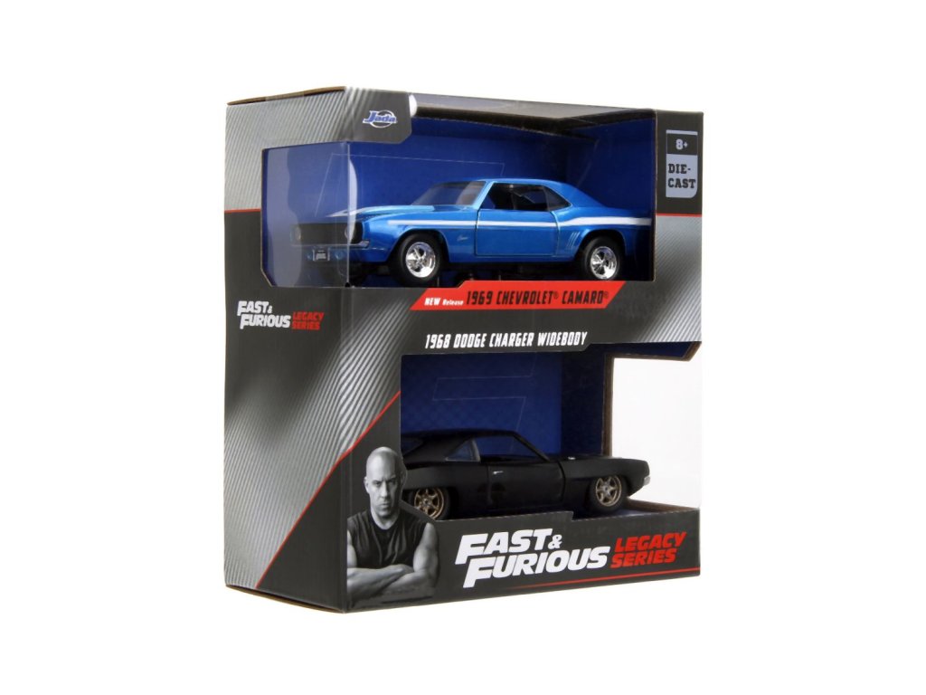 Kovové modely áut z filmu Rýchlo a zbesilo v dvojbalení - Chevrolet Camaro 1969 a Dodge Charger Wide Body 1968, voľnobeh, otváracie dvere, mierka 1:32, veľkosť 13 cm. Wave 2/1.Dodatočné parametre