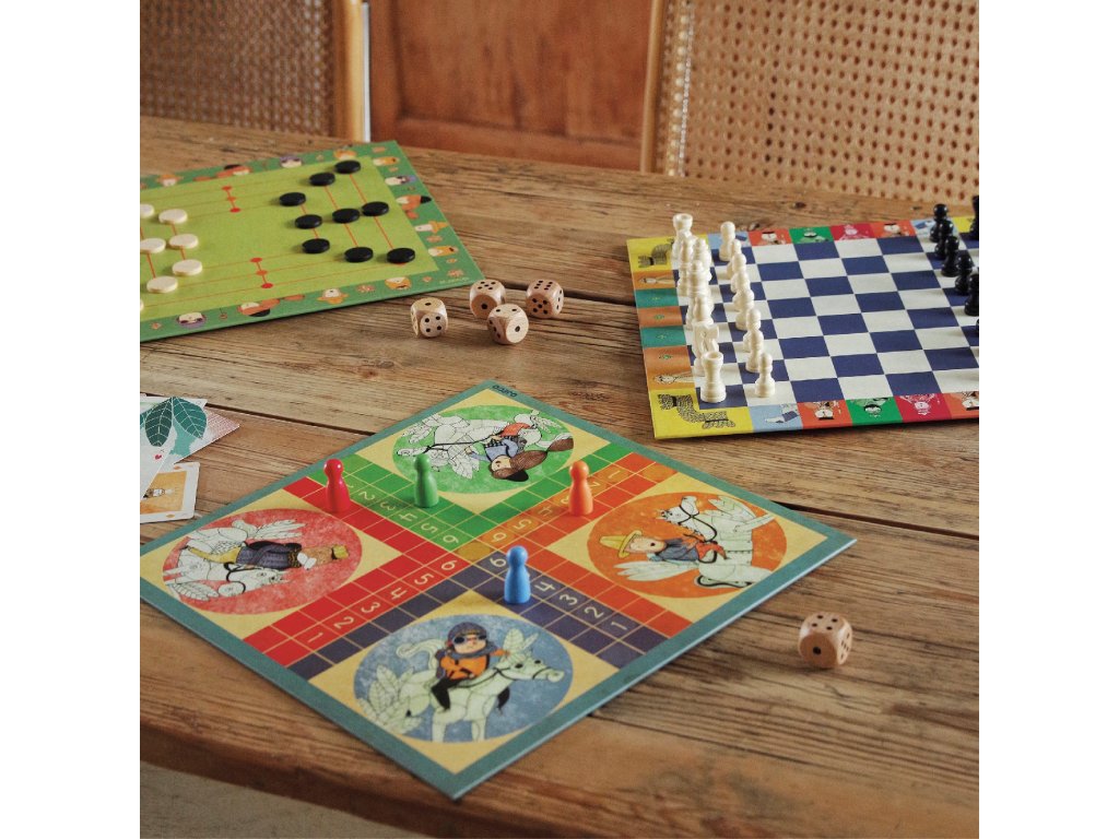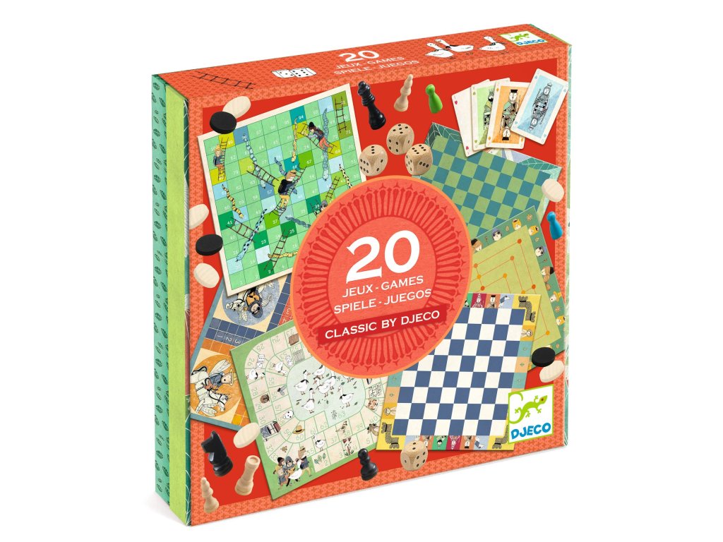 Sada 20 klasických spoločenských hier 20 hier v jednej krabiciZbierka 20 klasických spoločenských hier je nadčasový rodinný set značky Djeco, vďaka ktorému máte doma „herňu“ plnú overených hier v jednom krásnom balení. V krabici nájdete obľúbené klasiky, ktoré sa dajú hrať opakovane – podľa chuti raz rýchla hra, inokedy dlhšia strategická partia.Set stojí na 3 obojstranných hracích doskách, takže ponúka viac herných plánov bez toho, aby zaberali veľa miesta. Súčasťou sú aj šachové figúrky, dáma, drevéné herné figúrky, kocky, karty a blok na zapisovanie výsledkov. Vďaka tomu si vyberú začiatočníci aj skúsenejší hráči a deti sa prirodzene učia pravidlá, férovosť, sústredenie a plánovanie.Rýchly prehľad odporúčaný vek: 6+ počet hráčov: 2–4 (podľa zvolenej hry) čo v sete nájdeš: klasické doskové, kartové aj kockové hry v jednej krabici hracie dosky: 3 obojstranné materiál: papier/kartón (FSC®) + herné komponenty rozvíja: logiku, stratégiu, pozornosť, trpezlivosť, sociálne zručnostiHlavné benefity 1 krabica = 20 hier – ideálne do domácnosti aj na chalupu kombinácia stratégie, šťastia a postrehu – každý si nájde svoj štýl krásne spracovanie „classic“ v moderných ilustráciách Djeco výborné na spoločné rodinné večery aj ako darčekČo obsahuje balenie 3× obojstranná hracia doska 16× drevená figúrka 40× kameň na dámu 32× šachová figúrka 54× karta 5× kocka blok na zapisovanie výsledkov návody/pravidláAko to funguje Vyberte si hru podľa nálady (dosková, kartová alebo kocková). Rozložte správnu stranu hracej dosky a pripravte figúrky/karty/kocky. Prečítajte si krátke pravidlá a zahrajte si prvú skúšobnú partiu. Vymeňte hru a objavujte ďalšie klasiky – v jednej krabici ich máte stále poruke.Technické parametre typ: rodinný set klasických hier obsah: doskové + kartové + kockové hry odporúčaný vek: 6+ Tu nájdete návodDodatočné parametre