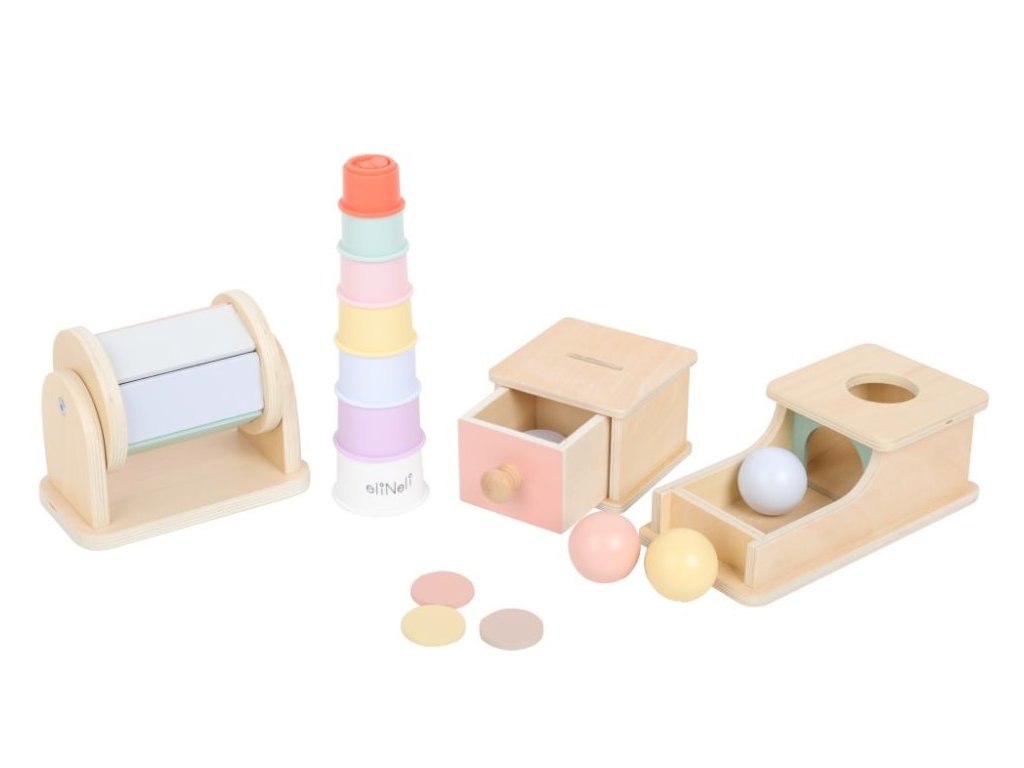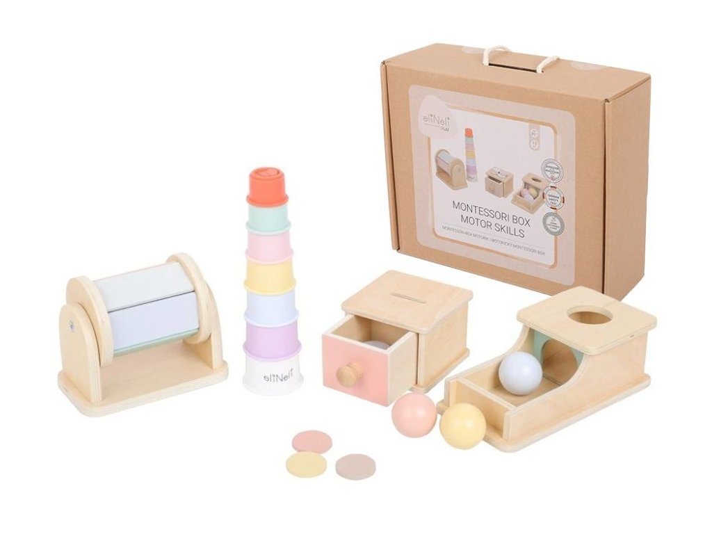 Značka eliNeli prináša do detského sveta moderný dizajn v spojení s moderným európskym štýlom inšpirovaným nemeckou kvalitou a dizajnom. Prioritou pri výrobe sú prírodné materiály, prírodné drevo, čím podporuje udržateľnosť a bezpečnosť hračiek. Nové výrobky prechádzajú prísnymi bezpečnostnými testami TÜV Rheinland, čo zaisťuje bezpečnú hru deťom a pokoj rodičom. Kolekcia farma je inšpirovaná vidiekom a skutočnými hospodárskymi zvieratami v ich skutočnej, reálnej, podobe, čo prináša do hry a učenia autentickosť, radosť z objavovania. Produkty eliNeli sú navrhnuté s ohľadom na reálne potreby detí a rešpektujú ich rozvojové fáze podľa montessori metodiky. Inšpiráciou pre dizajn a farebnú paletu sú princípy montessori pedagogiky (použité farby rešpektujú paletu montessori). S eliNeli sa deti učia, tvoria a rastú v bezpečnom a podnetnom prostredí, ktoré nielen spĺňa, ale prekonáva ich očakávania. Sada montessori motorických hračiek je ideálnym darčekom pre deti od 10 mesiacov. Starostlivo vybrané hračky sú v súlade s montessori pedagogikou a podporujú prirodzený rozvoj dieťaťa s prihliadnutím k jeho potrebám. Súbor 4 hračiek je zameraný predovšetkým na rozvoj motorických schopností. V sade deti nájdu 3 drevené hračky - otočný bubienok, box s farebnými guľami a vkladaciu hru s drevenými farebnými kolieskami. Všetko vo farebnej kombinácii prírodného dreva s jemnými pastelovými farbami. Poslednou hračkou v edukatívnom boxe sú silikónové poháriky, vo farbách rešpektujúcich paletu montessori. Poháriky majú všestranné využitie a ponúkajú množstvo možností na hranie. Deti ich môžu skladať vedľa seba, na seba, stavať komíny a množstvo zábavy si s nimi užijú vo vani, sprche aj na pieskovisku. Sada hračiek v praktickom boxe prirodzeným spôsobom zdokonaľuje motorické schopnosti, koordináciu očí a rúk, priestorovú predstavivosť, logické myslenie, deti sa rozvíjajú po fyzickej, psychickej aj emočnej stránke. Prečo kúpiť túto sadu hračiek: Prírodný materiál - eliNeli kladie dôraz na výrobu z dreva a prírodných materiálov, čím zaisťuje ekologickú šetrnosť a bezpečnosť hračiek. 4v1 - drevený otočný bubienok, drevený box s guľami, vkladacia hra a silikónové stohovacie poháriky. Montessori hračky - prevedenie odpovedá montessori princípom. Montessori pedagogika - hračky v sade rešpektujú princípy Montessori pedagogiky, podporujú prirodzený rozvoj dieťaťa a sú v súlade s jeho potrebami. Jednotné farebné schémy - použité farby u silikónových pohárikov rešpektujú paletu montessori, čo znamená, že každá hračka (pomôcka) má vždy rovnaké farebné schéma – jednotka je červená, dvojka je zelená atď., čo stimuluje zmysly detí a podporuje ich kreativitu a učenie. Zdokonaľuje schopnosti - pri hre so sadou hračiek deti zdokonalia predovšetkým motorické schopnosti, koordináciu očí a rúk, priestorovú predstavivosť, logické myslenie, spoznávať farbičky, porovnávať väčší a menší, spoznávať veľkostné rozdiely. Vysoké bezpečnostné štandardy - sada hračiek prešla prísnymi nemeckými bezpečnostnými testami TÜV Rheinland, čo zaručuje maximálnu bezpečnosť pre vaše deti. Hračka bezpečná pre deti - hračky zo sady sú vyrobené prevažne z prírodných materiálov, na náter sa používajú vodou riediteľné laky a farby, netoxické, vhodné a bezpečné pre deti. Technické parametre: Rozmer otočného bubienka: 17 x 10 x 13,5 cm. Rozmer vkladacej hry: 8 x 11 x 13 cm. Rozmer boxu s guľami: 8 x 11 x 22,5 cm. Rozmer pohárikov: 6,5 x 7 x 7 cm. Rozmer balenia: 37,5 x 35 x 29 cm. Počet dielov v balení: 19. Hmotnosť: cca 880 g. Materiál: drevo Schima, preglejka, silikón. Certifikáty a normy: CE, 2009/48/ES, TÜV Rheinland, EN 71-1, 2 a 3. Odporúčaný vek: od 10 mesiacov, 10m+. Upozornenie: Z dôvodu tlačovej chyby je na balení uvedený odporúčaný vek od 3 rokov (36 mesiacov), sada hračiek však spĺňa normy pre deti už od 10 mesiacov, je teda vhodná pre deti od 10 mesiacov veku. Rodičovský ťahák na chytré hranie a inšpiráciu z montessori pedagogiky nájdete na webe eliPlay: https://play.elineli.eu/sk/. Viac o produktoch eliNeli nájdete na: https://www.elineli.eu/sk/. Nahliadnite s nami do edukatívneho boxu s montessori motorickými hračkami pre deti: Často kladené otázky: Je hračka bezpečná pre deti? Sada montessori motorických hračiek eliNeli je testovaná, vhodná a bezpečná pre deti a vydrží vašim deťom dlho. Sada prešla prísnymi bezpečnostnými testami TÜV Rheinland. Spĺňa požiadavky smernice o bezpečnosti hračiek 2009/48/ES a normy o nezávadnosti a bezpečnosti hračiek EN 71-1, 2, 3, kedy sa testujú mechanické a fyzikálne vlastnosti, horľavosť aj migrácia určitých látok. Sadu montessori hračiek otestoval a Certifikát o zhode (Osvedčenie o zhode - CE) udelil technický a skúšobný ústav. U sady 4v1 eliNeli máte istotu, že je hračka pre vaše deti vhodná a bezpečná, je testovaná, na náter sú použité netoxické, zdravotne nezávadné laky a farby.Dodatočné parametre