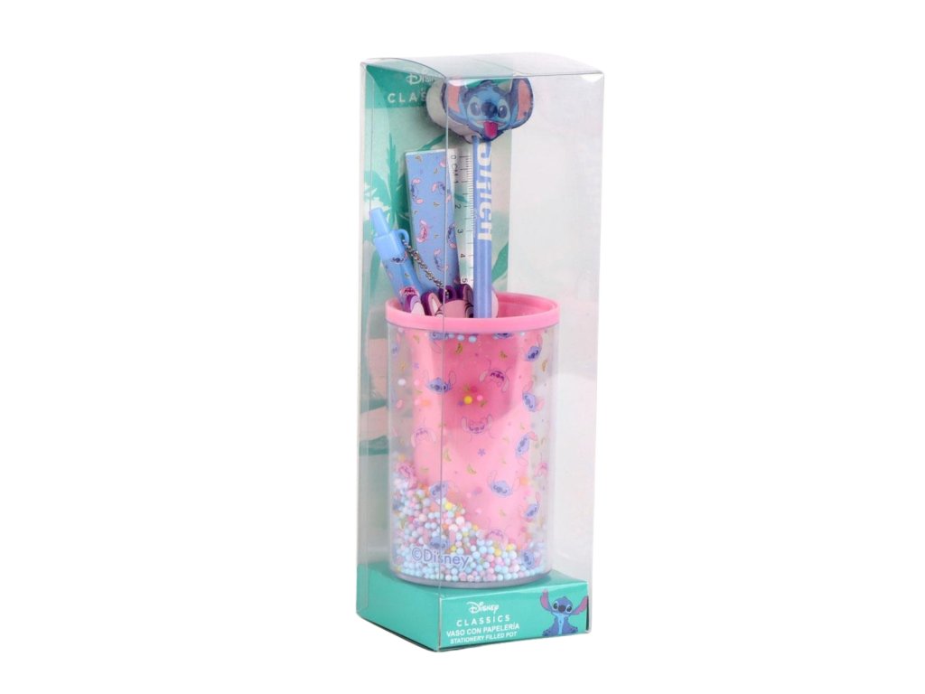 Sada písacích potrieb so stojanom StitchUsporiadané písacie potreby pre malých fanúšikov StitchS touto sadou písacích potrieb so stojanom bude mať vaše dieťa všetko pekne po ruke. Praktický stojan pomáha udržiavať poriadok na stole, zatiaľ čo farebný dizajn s obľúbenou postavičkou Stitch z Disneyho filmu robí písanie zábavou. Ideálne pre školu aj voľný čas doma.Čím je set zaujímavý?Všetky písacie potreby - ceruzka, pero, pravítko, vždy poruke v praktickom stojaneFarebný a hravý dizajn so StitchomRozvíja kreativitu a organizáciu detíPerfektné do školy aj na domaDodatočné parametre
