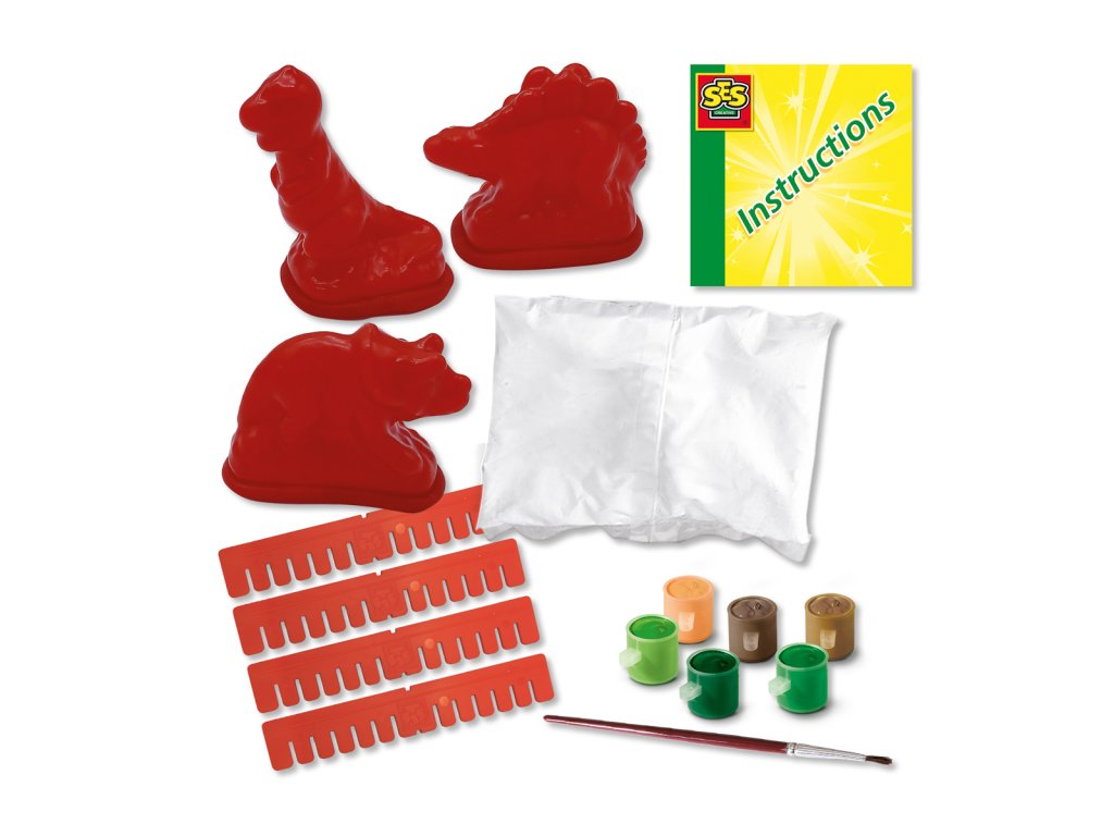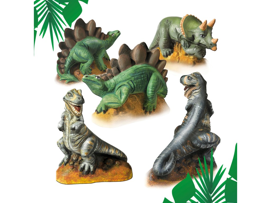 Tri pevné gumené formy na odlievanie dokonale prepracovaných dinosaurov. Ľahká výroba, možno maľovať aj lakovať. Sada vrátane sadry, štetca a temperových farieb. Vek: 5+. Rozmer balenia: 30 x 20 x 4 cm.Dodatočné parametre