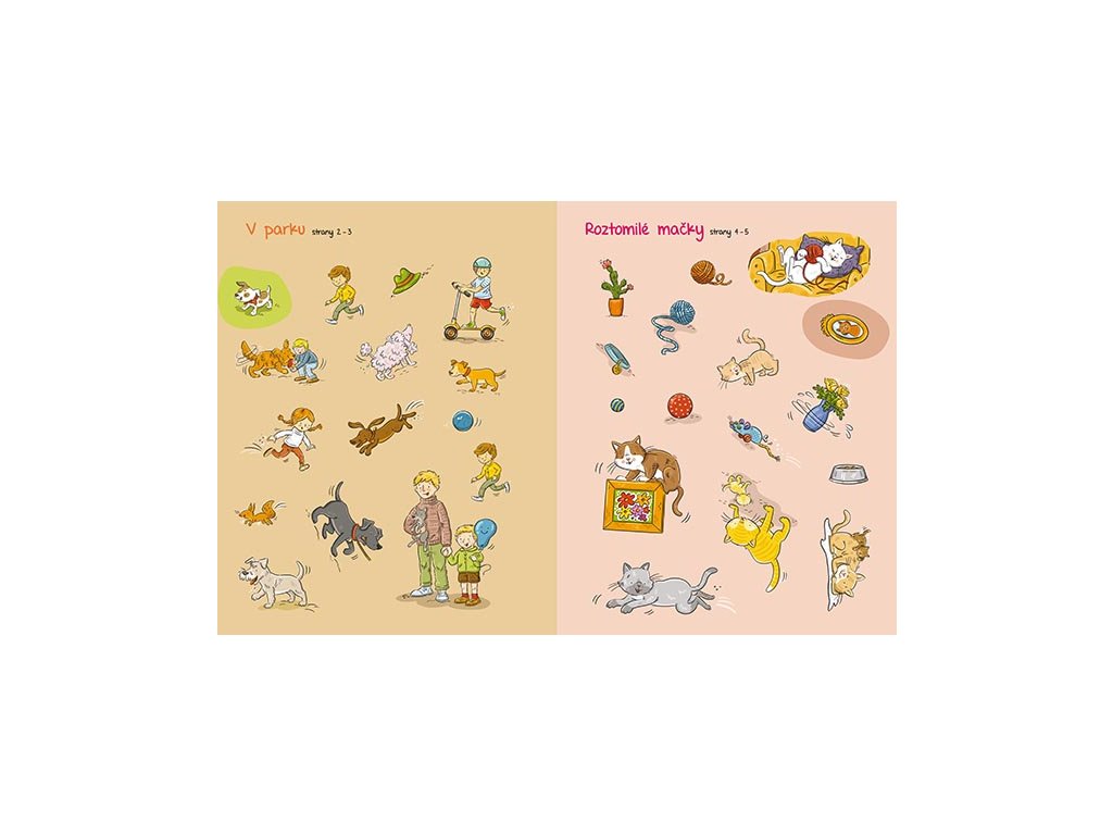 Samolepková knižka Domáce zvieratká Domáci maznáčikovia v knižke plnej samolepiek! Samolepková knižka Domáce zvieratká ponúka malým deťom zábavné spoznávanie najobľúbenejších zvieratiek, ktoré bežne žijú v domácnostiach či na dvore. Deti sa zoznámia s mačičkami, psíkmi, králikmi, morčatami, sliepočkami a mnohými ďalšími. Vďaka 16 farebným stranám a 8 stranám samolepiek si môžu vytvárať vlastné scény, dopĺňať obrázky a rozvíjať tak svoju predstavivosť, slovnú zásobu aj jemnú motoriku.Dodatočné parametre