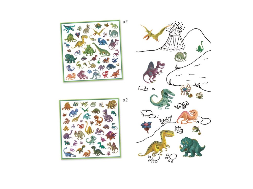 Samolepky Dinosaury Set s veľkým množstvom úžasných samolepiek. Nálepky sú u detí veľmi obľúbené - jednoducho sa aplikujú a majú mnohoraké využitie. Deti si nimi môžu doplniť svoje kresby, alebo nimi ozdobiť rozličné predmety. Dinosaury čakajú, aký príbeh im vytvoríš. Vytvárajte s nálepkami svoje vlastné príbehy dinosaurov. Obsahuje cca 160 samolepiek na štyroch hárkoch. Poskytujú možnosť rozvíjať jemné motorické zručnosti a kreativitu.Dodatočné parametre