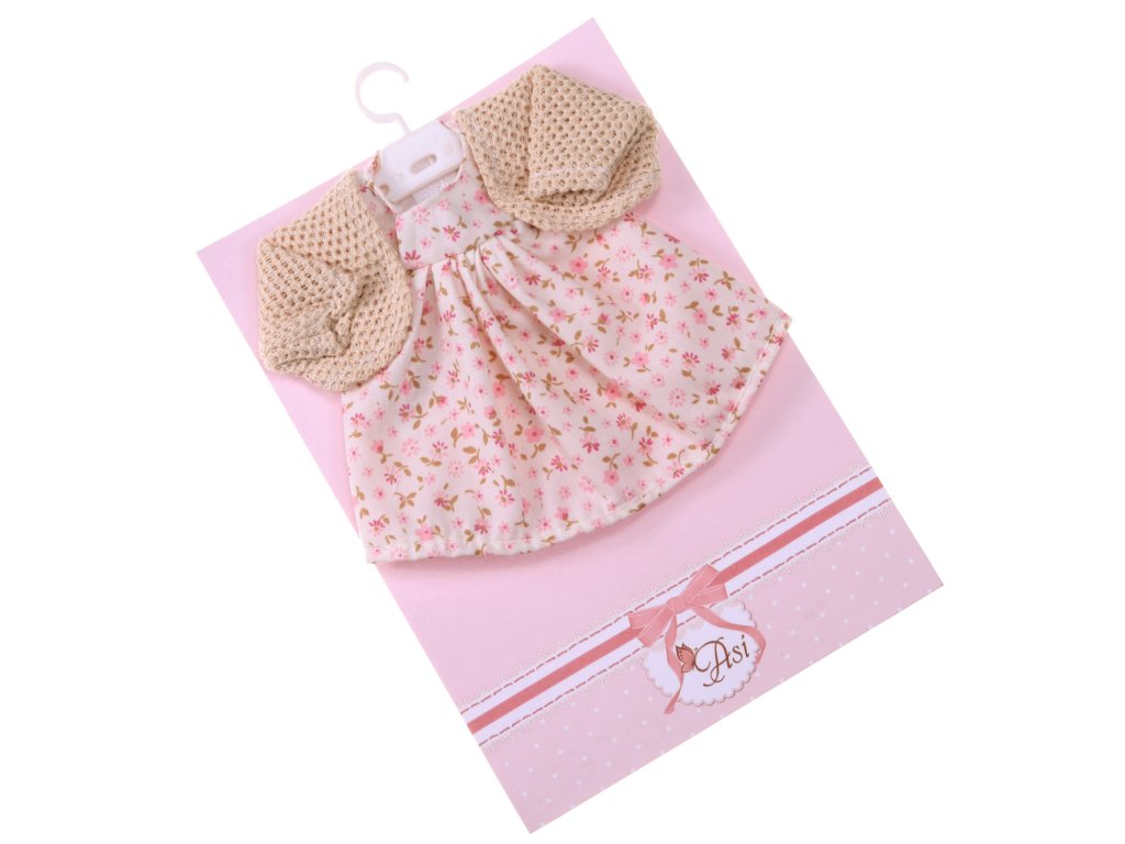 Šaty so svetríkom sú určené pre bábiku s výškou 20 cm . Súprava dopĺňa kolekciu oblečenia španielskej značky ASI. Šaty krémovej farby majú krátke rukávy a sú zdobené malými kvietkami. Výbavu dopĺňa béžový pletený sveter. Bolerko sa bude hodiť na zabalenie bábiky najmä v chladnejších dňoch. Celok očarí mäkkým a na dotyk príjemným materiálom.