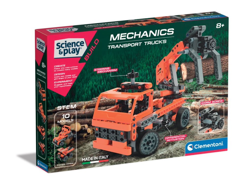 Clementoni Mechanická sada Science and Play – Prepravné vozy. Táto úžasná mechanická sada vám pomôže pochopiť, ako fungujú veľké nákladné autá a dostať sa do kontaktu s princípmi mechaniky a inžinierstva. Obsahuje viac ako 200 dielov, s diferenciálom, ozubenými kolieskami, tyčami, panelmi a mnohými ďalšími. Sada umožňuje vytvoriť konštrukciu 10 fantastických pohyblivých modelov prepravných vozov so skutočným riadením a ďalšími prepracovanými detailmi. Obsiahly ilustrovaný manuál sprevádza dieťa krok za krokom pri stavbe modelov a rozvíja základy mechaniky, strojárstva, a to ako fungujú páky a prevody. Rozmery balenia: 27,8 x 39,6 x 6 cm. Vek: 8+Dodatočné parametre
