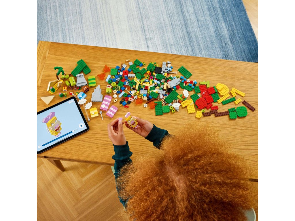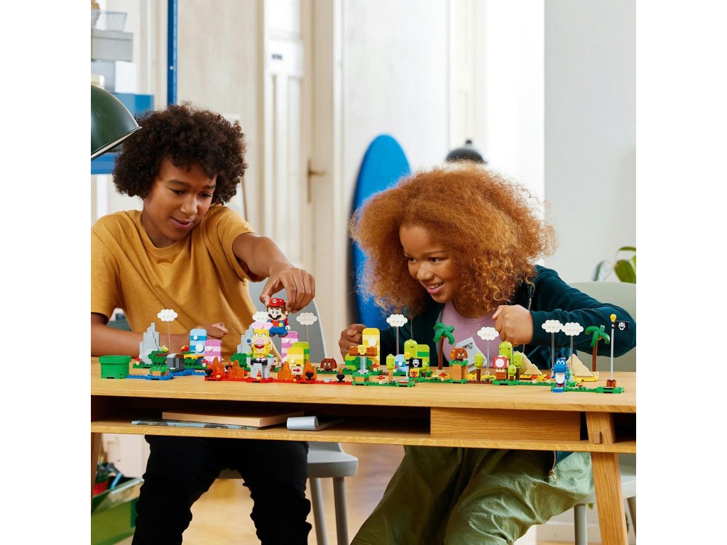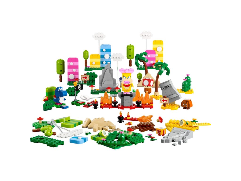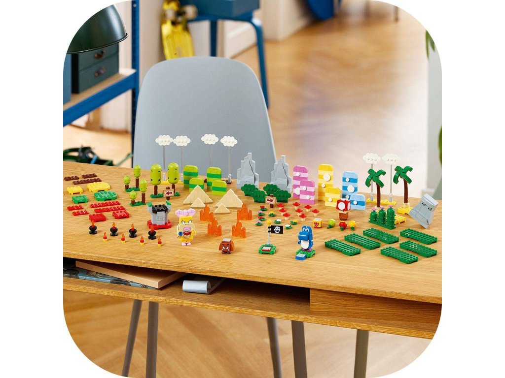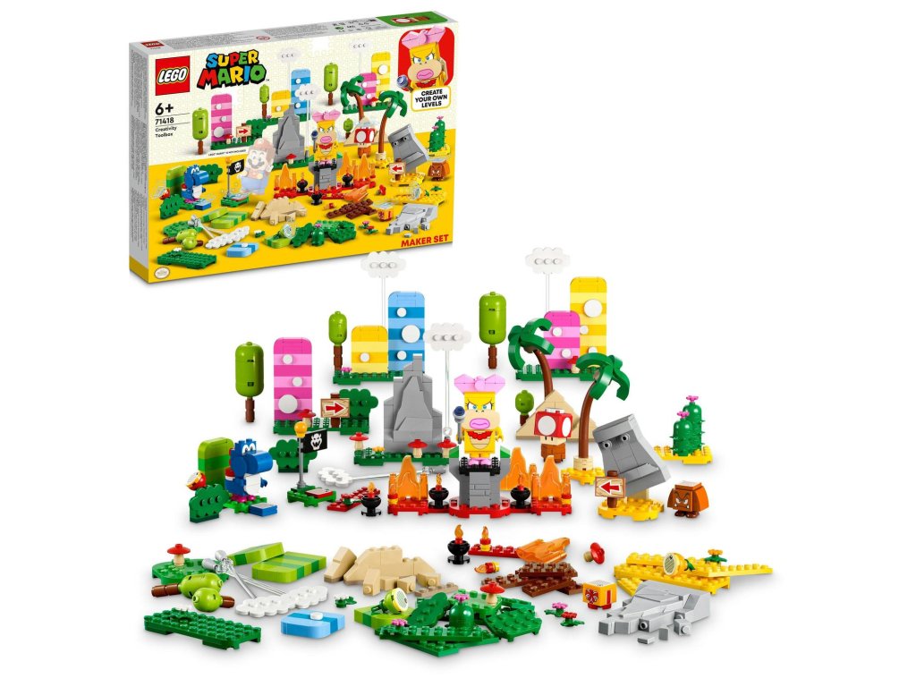 Malí stavitelia môžu svojim levelom dodať rôzne detaily a hĺbku vďaka setu LEGO® Super Mario™ Set pre tvorcov – tvorivý box (71418). Ponúka všemožné zostaviteľné stromy, kvety, hory, huby, pyramídy, vlajočku kontrolného bodu a ešte omnoho viac prvkov na pretvorenie trávnatých, púštnych a lávových levelov Super Mario™. Je skvelým darčekom pre deti od 6 rokov, ktoré vlastnia štartovací set (71360, 71387 alebo 71403 – potrebný na interaktívne hry). Medzi ďalšími doplnkami nájdete 3 ovocia, darčekovú škatuľu, Super Mushroom s akčnou značkou a 3 postavy LEGO Super Mario: Wendy, modrého Yoshiho a Goombu. Sprievodná aplikácia Stiahnite si aplikáciu LEGO Super Mario – obsahuje návody na stavanie, kreatívnu inšpiráciu ďalší zábavný obsah, ktorý rozprúdi detskú fantáziu. Zberateľské stavebnice Modulárne štartovacie a rozširujúce sety LEGO Super Mario umožňujú fanúšikom rozširovať, prestavovať a navrhovať jedinečné levely a tráviť dlhé hodiny zábavným zbieraním mincí.Dodatočné parametre