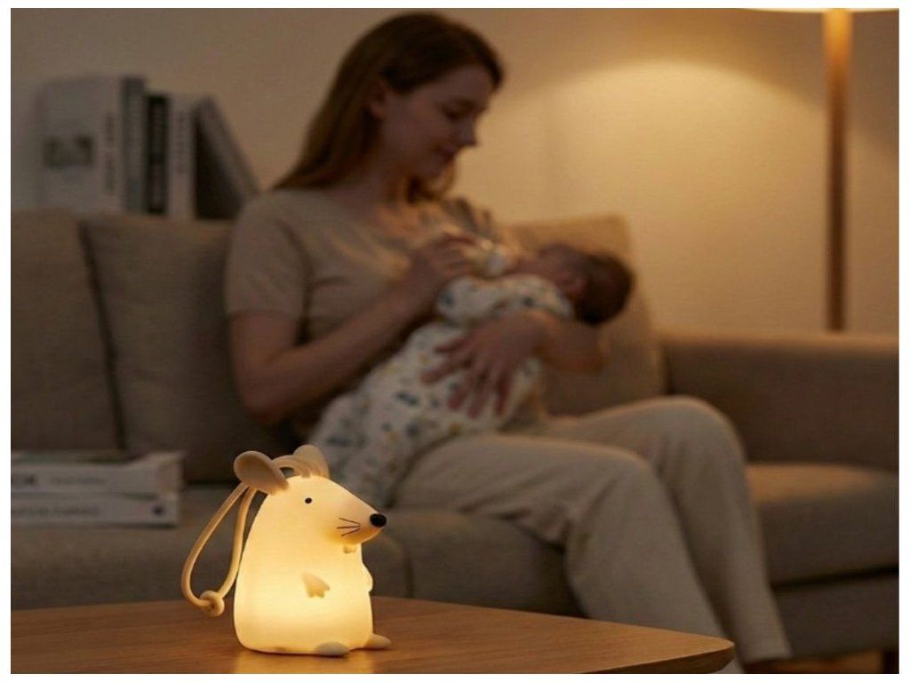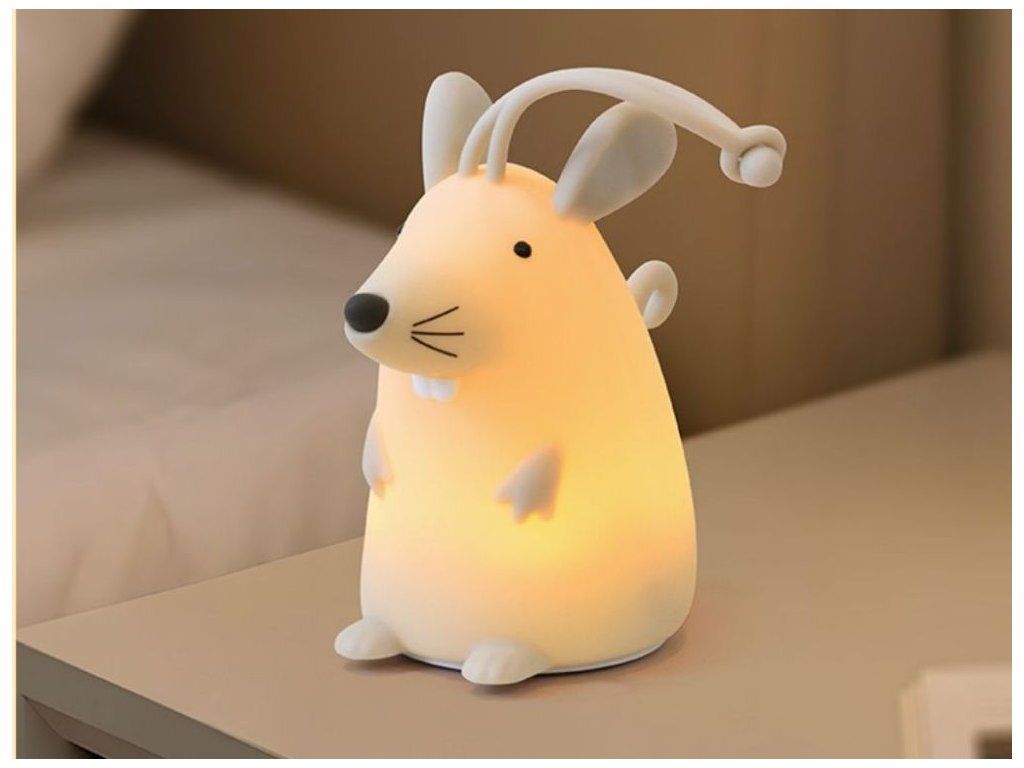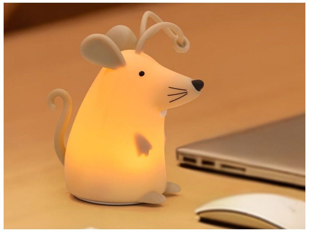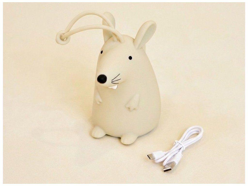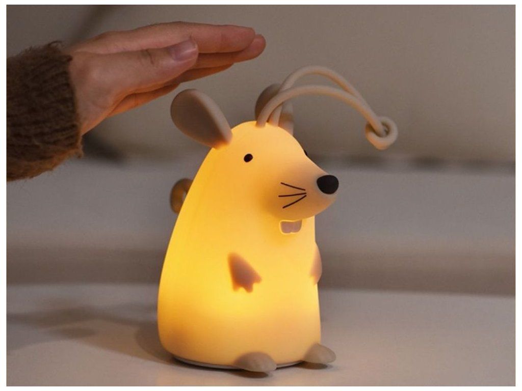 Bezpečný silikónový materiál Lampička v tvare myšky je vyrobená z mäkkého, odolného silikónu, ktorý je pre deti bezpečný a príjemný na dotyk. Materiál sa ľahko udržiava, je odolný voči nárazom a nemá ostré hrany, čím sa minimalizuje riziko poranenia aj pri hre najmenších. Vďaka ľahkej konštrukcii a mäkkému povrchu môžu deti lampičku bezpečne uchopiť a samostatne s ňou manipulovať. Vďaka pútku možno lampičku zavesiť napríklad na detskú postieľku. Diaľkové ovládanie Lampička má diaľkové ovládanie, ktoré umožňuje jednoduché zapínanie a vypínanie svetla z druhej strany miestnosti. Rodičia aj deti môžu meniť nastavenia bez priameho kontaktu so svetlom. Diaľkové ovládanie umožňuje ľahko nastaviť jas a vybrať si medzi farbami RGB, takže svetlo možno nastaviť ako jemné nočné svetlo alebo jasnejšie osvetlenie na čítanie či hranie. Dizajn do detskej izby Lampička v tvare myšky prináša do detskej izby hravý a estetický prvok. Jej vzhľad deti zaujme a dodá interiéru jemný, milý akcent. Vďaka malým rozmerom a nízkej hmotnosti možno lampičku ľahko premiestniť alebo umiestniť kdekoľvek v miestnosti. Je vhodná na domáce použitie, ako aj ako praktický doplnok na cesty. Zmena farieb RGB Lampička ponúka možnosť zmeny farby RGB poklepaním, vďaka čomu môžu deti interaktívne meniť farbu svetla podľa svojej nálady. Táto funkcia podporuje kreativitu a zábavu. Deti si môžu vybrať z niekoľkých farebných odtieňov a jednoducho upraviť svetlo podľa svojej nálady alebo momentálnej hry, čím spestria prostredie svojej izby. Technické parametre Rozmery Približne 14,8 x 14,8 x 8,6 cm Rozmery balenia 15,6 x 12 x 12 cm Materiál ABS, silikón Hmotnosť približne 200 g Vstupné napätie/prúd 5 V - 1000 mA Maximálny výkon 3 W Kapacita batérie 1200 mAh Batéria Li-ion Hmotnosť batérie 35,490 g Rozmery batérie Φ18,25*65,96 (mm) Menovité napätie 3,7 V / 1200 mAh / 4,44 Wh Čas nabíjania/používania Približne 3 hodiny / 14 hodín Funkcie Zmena farby RGB poklepaním Certifikáty a normy CE-EMC / ROHS Odporúčaný vek Od 3 rokov, 3+ Upozornenie Používajte iba nabíjačku s maximálnym výstupným napätím 5 V / 1000 mA. Použitie nabíjačky s vyšším napätím môže spôsobiť nezvratné poškodenie výrobku. Na závady spôsobené nesprávnym napájaním sa nevzťahujú záručné reklamácie. Výhody výrobku Bezpečný mäkký silikón poskytuje odolnosť a príjemný dotyk, vďaka čomu je lampička ideálna pre deti. Je vhodná na každodenné používanie a bezpečná aj pre najmenších. Diaľkové ovládanie uľahčuje nastavenie jasu a farby a zmena farieb RGB podporuje kreativitu a zábavu. Vďaka tomu je lampička nielen praktickým svetlom, ale aj interaktívnym doplnkom detskej izby.Dodatočné parametre